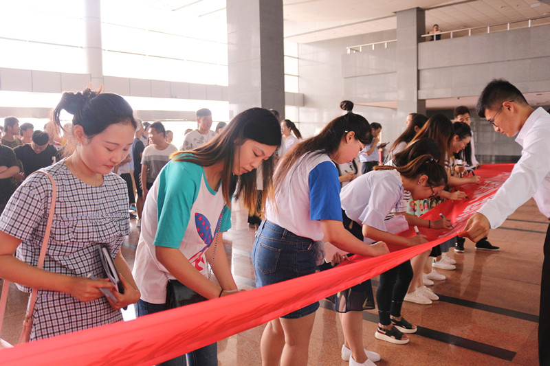 根据学校《关于做好2017届毕业生教育和文明离校工作的通知》的文件要求,为了更好的教育和引导毕业生文明离校,充分展示诸侯ok1133官网毕业生良好的精神风貌,学院于6月22日上午,在教学南楼A座大厅举办了2017届毕业生文明离校签名仪式。学院院长许彦彬、党委副书记王彦、副院长苏宝利以及毕业班辅导员和2017届毕业生学生干部代表、党员代表参加了本次活动。 党委副书记王彦在仪式上作了讲话。她指出,毕业之际,为体现“文明离校”的主题,学院在毕业季主办了各种灵活多样的活动,这些活动,既体现了同学们对母校的感恩,也体现了同学们对母校,对学院发展的肺腑之言,体现了同学们对母校、对诸侯ok1133官网依依不舍的情怀!王彦要求毕业生:一是要理性告别,文明离校。树立良好的毕业生形象,用自己的实际行动,为母校留下完美印象,为低年级同学留下学习榜样,为自己留下美好的回忆。二是做一名敢于担当,敢于作为的有益于社会建设的人才。毕业生即将走向社会,面对激烈的社会竞争,要有胜者的信心和勇气,同时也应具备经受挫折的宽广胸怀和从头再来的豪迈和敢于担当,敢于挑战,敢于作为的雄心壮志。同时她希望同学们离开校园后,继续关心学校和学院的发展,对学校的各项办学事业提出宝贵的意见和建议。 2017届毕业生代表张萱同学向毕业生发出了“文明离校倡议书”。她倡议毕业生们要积极进取,圆满离校;遵规守纪,文明离校;敢于担当,诚信离校;合理安排,有序离校;牢记师恩,成熟离校;尽己所能,奉献离校;昂扬斗志,自信离校。简单的话语寄托着他对母校的不舍和深情,对学校和毕业生前程的期望,也有着对大四毕业生的深深祝福和对未来的自信。 随后,毕业生代表们郑重地在横幅上签上自己的名字,做出了自己文明离校、平安离校的庄严承诺,为自己美好的大学生活画上了圆满的句号。