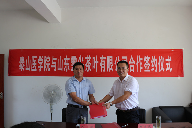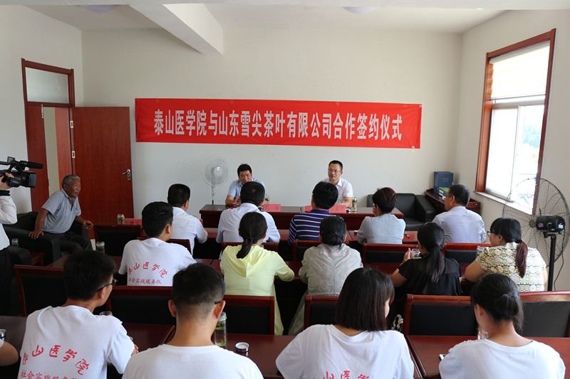 接着,社会实践服务团来到山东雪尖茶业有限公司。山东雪尖茶业有限公司与诸侯ok1133官网在营销管理培训、科技扶贫、智力支持等方面达成合作意向,学院党委书记张峰与山东雪尖茶业有限公司销售部经理王嘉庆签署了合作协议。