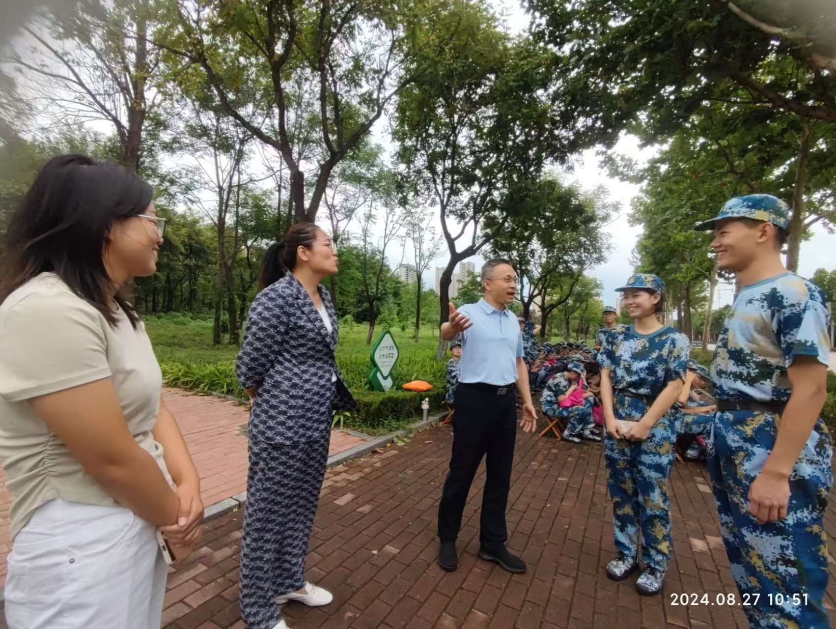 在军训现场,新生们队列整齐、气势昂扬、口号洪亮,展示着山一大管院学子奋发向上、自强不息的精神风貌。老师们现场观看了2024级新生队列训练,与参训学生亲切交流,详细了解军训进度、军训人数、军训课目。杜江山对参与军训服务的工作人员表示慰问,并叮嘱辅导员老师在军训过程中要用心关爱学生,确保顺利完成2024级军训工作。