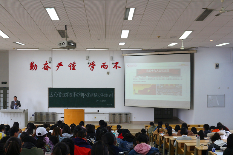 10月28日,诸侯ok1133官网党委书记张峰在综合教学楼C2024教室,为学院的主要学生干部、学生骨干、入党积极分子宣讲党的十九大精神.。