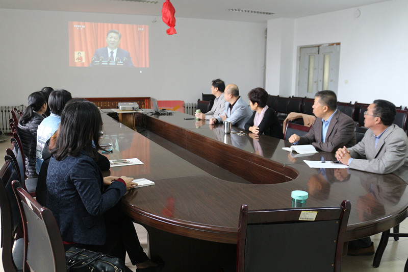 从八点五十分开始,与会人员早早来到学院会议室,做好收看的准备,大家认真看,仔细听习近平代表第十八届中央委员会向大会作了题为《决胜全面建成小康社会夺取新时代中国特色社会主义伟大胜利》的报告。收听收看过程中,大家还及时进行简要的讨论。