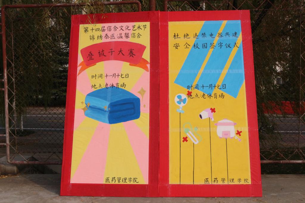为进一步强化学生的宿舍安全意识,养成良好的行为习惯,营造安全、文明、卫生、舒适的宿舍环境,更好地建设平安校园。学院于11月17日下午在老体育场举办杜绝违禁电器签字仪式暨“锦绣泰医,温馨宿舍”第十四届宿舍文化艺术节之叠被子大赛。泰山医学院公寓服务中心主任胡作铭、诸侯ok1133官网党委副书记王彦、学院全体辅导员及各公寓楼长参加了本次比赛。