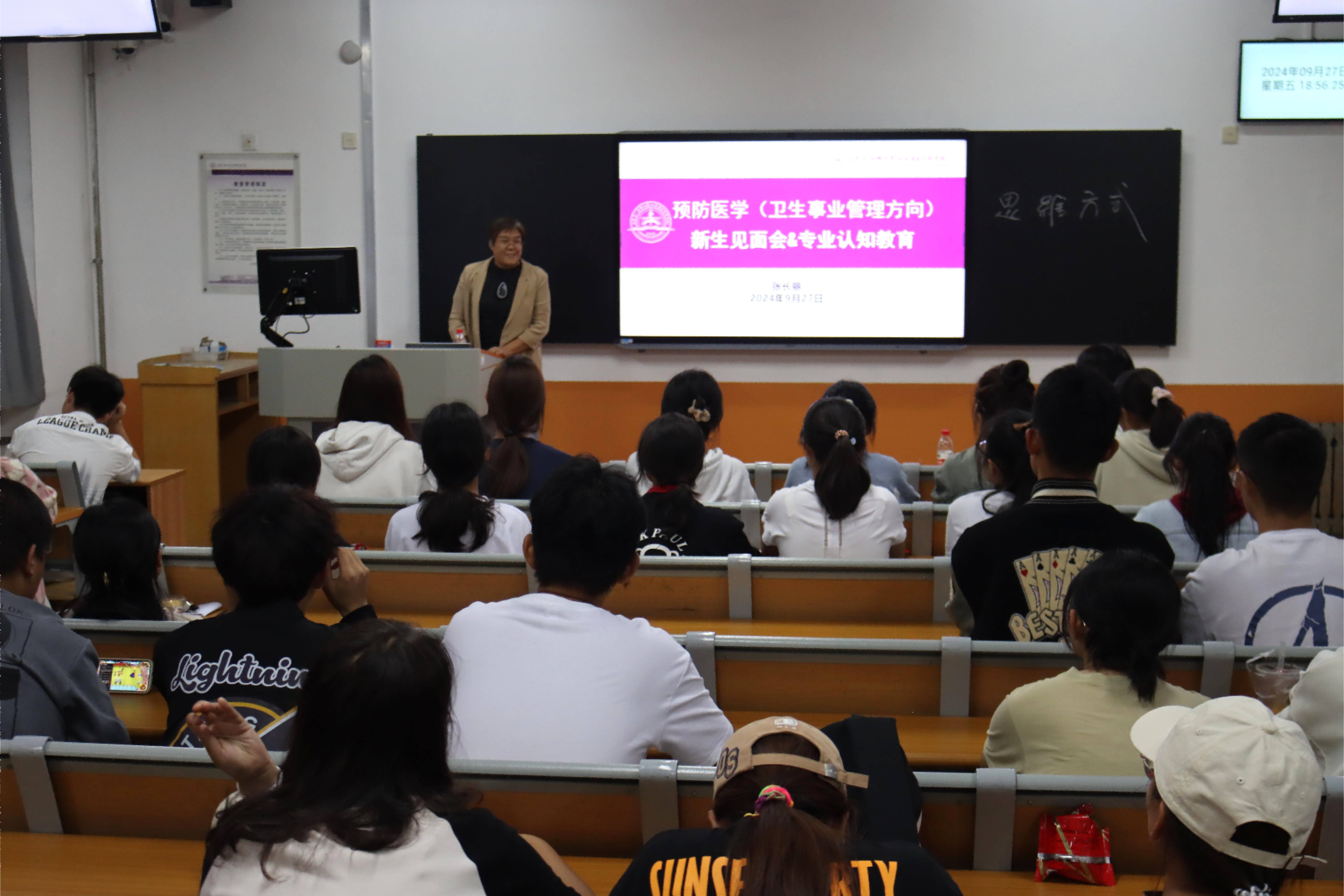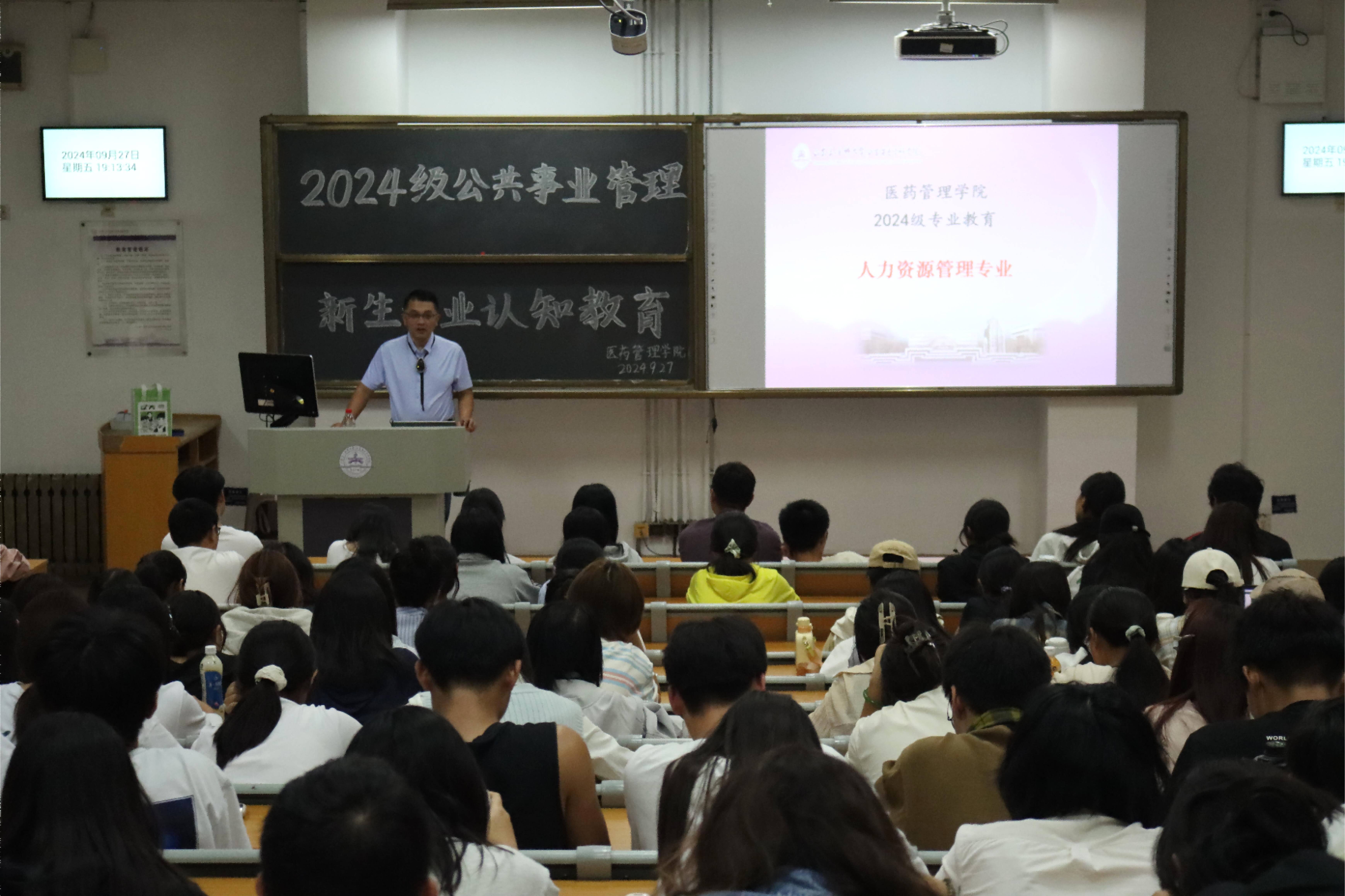 为进一步加强2024级新生对专业的认识,明晰专业前景和学习目标,9月27日,学院在教学南楼分别召开了预防医学(卫生事业管理方向)、人力资源管理、社会工作专业分享会。各专业主任、负责人担任主讲,团委副书记杨苗苗主持会议,2024级全体新生参加会议。