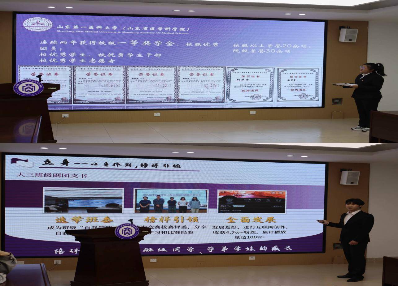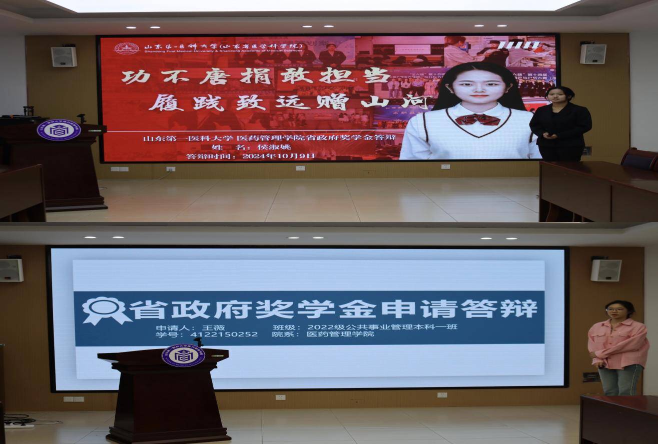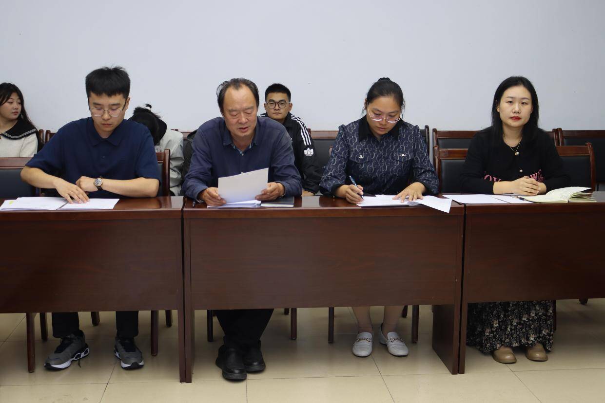 赵启会在会议中指出,省政府奖学金不仅仅是一份物质的奖励,更是对同学们过去一段时间里辛勤付出和优异成绩的肯定。它承载着学校对大家的期望和鼓励。董灵芝为学生简单介绍评选规则。参加评选会的四位同学分别从学业成绩、班级工作、科研竞赛、志愿实践等方面进行个人答辩。评审老师在认真听取个人演讲后依照评分准则进行现场评分。