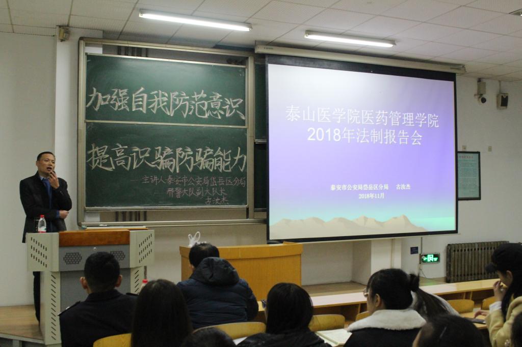 学院邀请了泰安市公安局岱岳区刑警大队副大队长古汝杰作为本次报告会的主讲嘉宾。首先,古警官就近年来我国电信诈骗案件触目惊心的数据进行讲解,并指出网络诈骗的形式主要有:冒充熟人诈骗、招聘诈骗、中奖诈骗、钓鱼诈骗等五种类型。同时,结合一些生动案例给大学生讲了防范措施,针对不法分子惯用的以电话、短信、微信、QQ等通信工具实施的诈骗手段,古警官指出要加以警惕和预防,要第一时间告知辅导员进行求助咨询,要多与家人核实、沟通,切忌贪图小利。随后,古警官就高校大学生受骗的心理、特点、人群等做了分析,对招聘诈骗、刷网评信誉等常见的诈骗类型、被骗的应对方法等做出详细讲解。最后,古警官提醒同学们注意“8个凡是方针”:凡是通知中奖,领取津贴,要先缴纳手续费、保证金的,都是诈骗;凡是让登录网站查看通缉令、登录银行卡信息的,都是网络诈骗;凡是通知家属亲戚出事先汇款的,都是电信诈骗等“8个凡是方针”。