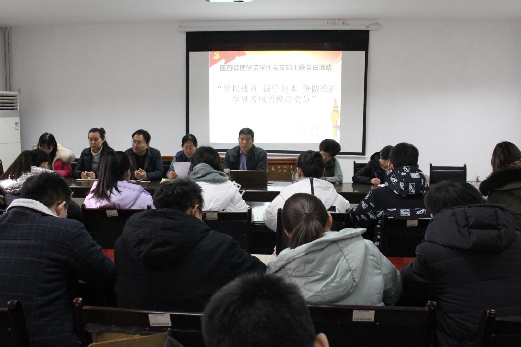 为深入学习贯彻习近平新时代中国特色社会主义思想和党的十九大精神,继续贯彻落实“学党章党规、学系列讲话,做合格党员——两学一做”常态化制度化学习,根据学校组织部党建工作日安排,结合学院“考风考纪建设活动月”活动安排,学院学生党支部于12月26日下午举办“学以载道诚信为本争做维护学风考风的模范党员”主题党日活动。学院党委书记张峰、副书记王彦、全体辅导员、班主任、各党支部全体党员参加了本次活动。