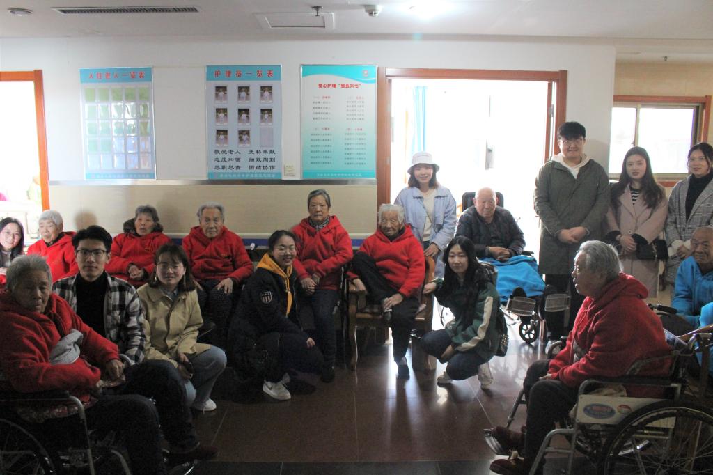 志愿服务队的同学们分为若干小组,在工作人员的安排下,分别到各楼层去看望护理院的老人们。同学们陪老人聊家常、讲笑话、与老人互动唱起了喜闻乐见的歌曲。在有趣的互动之中,大家都把彼此当作家人一样,倍感温馨。临别时,同学们给老人们送上象棋和自己的画作,同时纷纷在贺卡上留下了对老人们最真挚的祝福。同学们与老人们在依依不舍中相约下次再见。