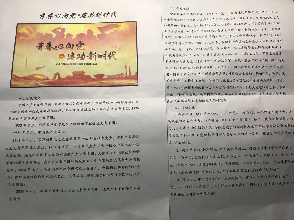 为纪念五四运动,传承五四精神,根据团中央和校团委的要求,从4月中旬开始,诸侯ok1133官网各级团支部陆续开展了“青春心向党 建功新时代”纪念五四运动100周年特别主题团日活动,通过多种形式学习并传承五四爱国精神。