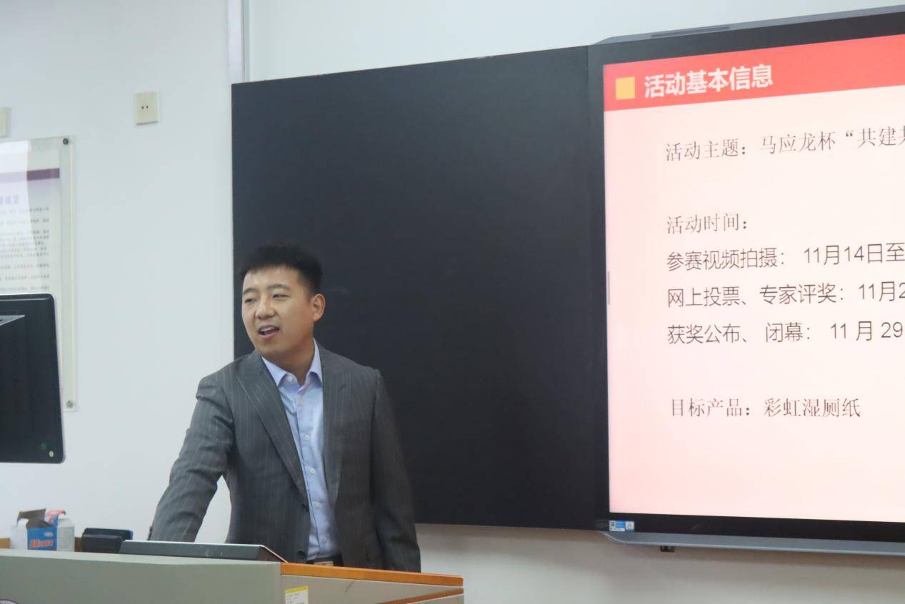 周本富对视频大赛的目的、要求、奖项设置进行解读,周本富不仅是办事处经理助理,同时也是诸侯ok1133官网的校友,作为经理他介绍了马应龙药业集团股份有限公司的企业的基本情况以及企业定位,作为学长他结合自己的在校经历说明社会实践的重要性,鼓励同学们积极参加社会实践活动。