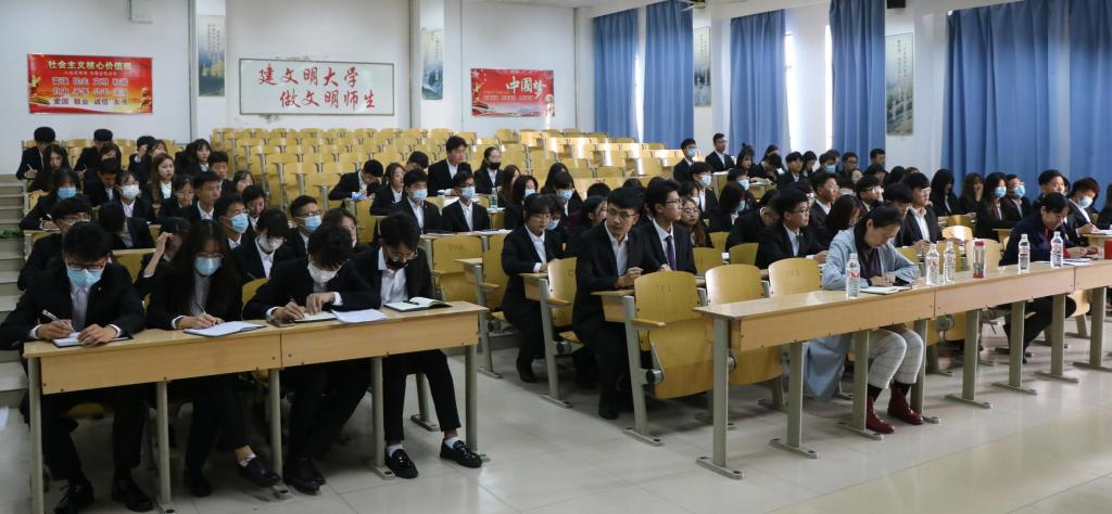 10月21日,诸侯ok1133官网在教学南楼C座2001教室召开了学院第二十届学生会成立大会暨优秀学生干部交流会。学院党委副书记胡睿、团总支书记胡华秀、辅导员张星、优秀学生干部代表及第二十届届学生会全体成员共计100余人参加了会议。