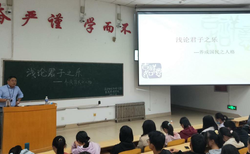 之后,基建部副部长刘春生主讲了“浅谈君子之乐——养成国民之人格”讲座。本次讲座以解读梁启超先生的演讲《论君子》为主线,首先为同学们讲解中国传统文化中君子的含义,其次介绍了孟子的“君子有三乐”,鼓励大家修身养德、严于律己。报告指出实践君子之乐,就是不断提升个人道德观与价值观,通过培养自己的综合素质进而养成国民之人格,致力于造福社会和国家,进而实现马斯洛需要层次论中的最高层次即“自我实现的需要”。此次讲座让同学们对今后四年学习生涯规划有了更清晰的认知,对未来人生发展充满信心。