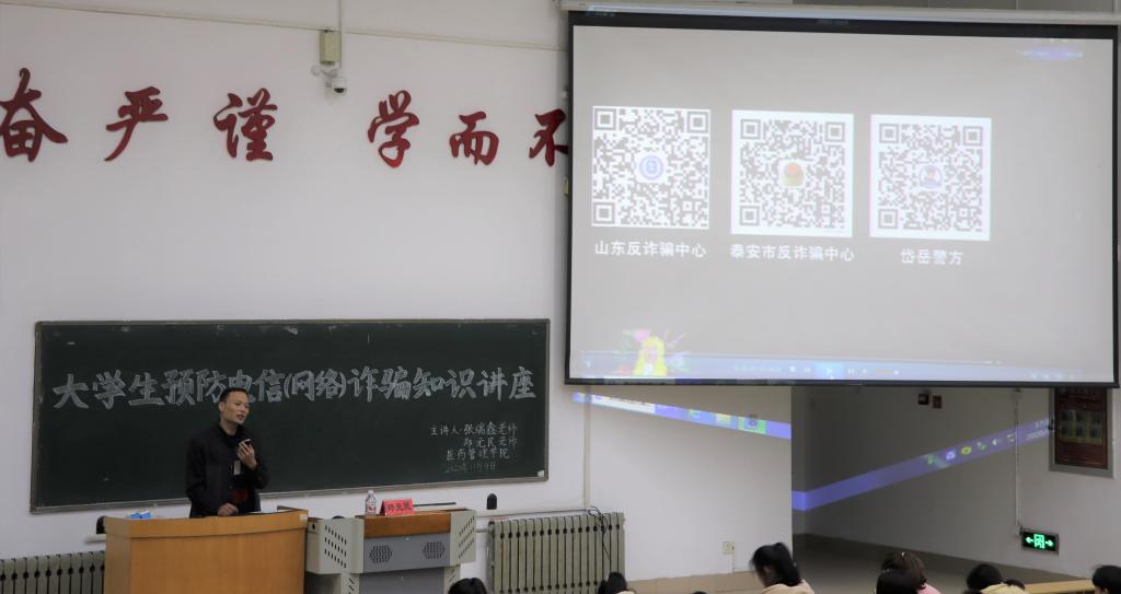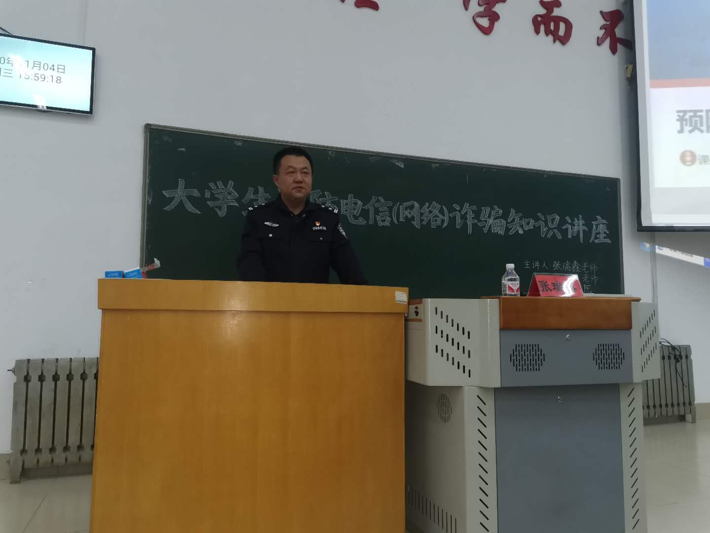 11月4日下午,泰安市岱岳区公安局办公室主任张瑞鑫、泰安市公安局岱岳分局刑侦大队民警郑元民来我校,分别为同学们作了大学生预防电信(网络)诈骗和终结诈骗知识讲座,从什么是电信网络诈骗、大学生的网络诈骗形式、如何防范网络诈骗、补救措施四个方面向同学们进行了分析,讲座结合着岱岳区近年来电信诈骗案件的数据进行讲解,此次报告会警示性强、教育性强、实用性强,让同学们深刻认识到网络电信诈骗活动的巨大危害,强化了防电信诈骗的意识,提高了诸侯官网学生规避风险的能力。