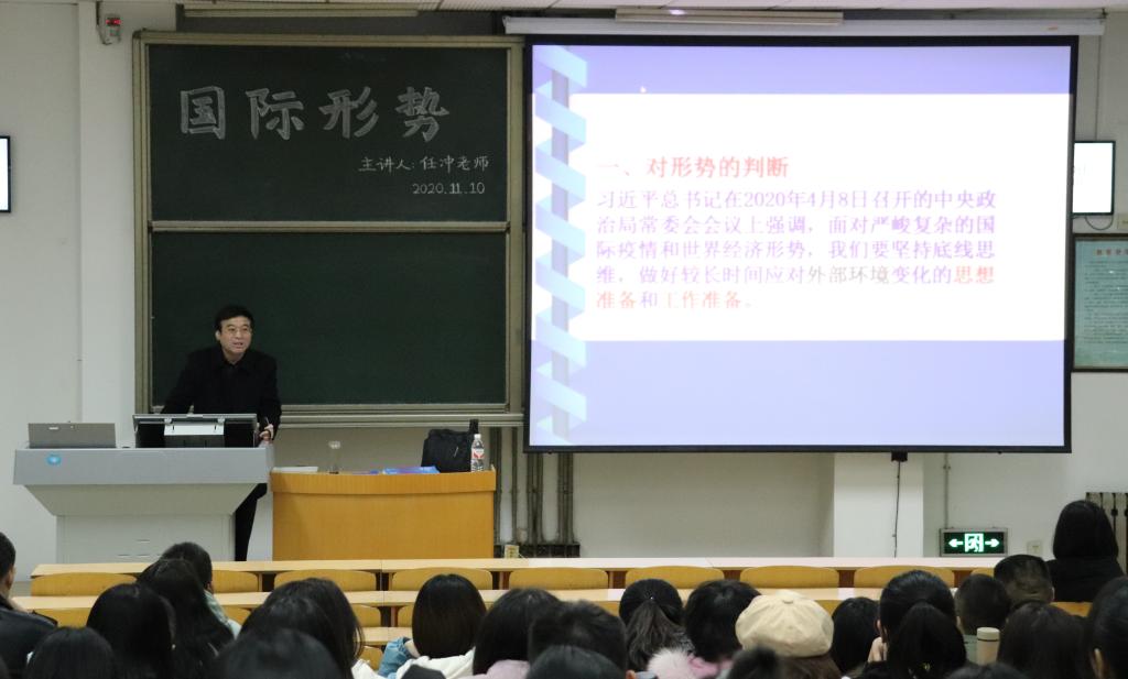 11月10日晚,诸侯ok1133官网党委邀请马克思主义学院任冲教授在教学南楼C1002教室为诸侯ok1133官网入党积极分子作关于当前国际形势的报告。