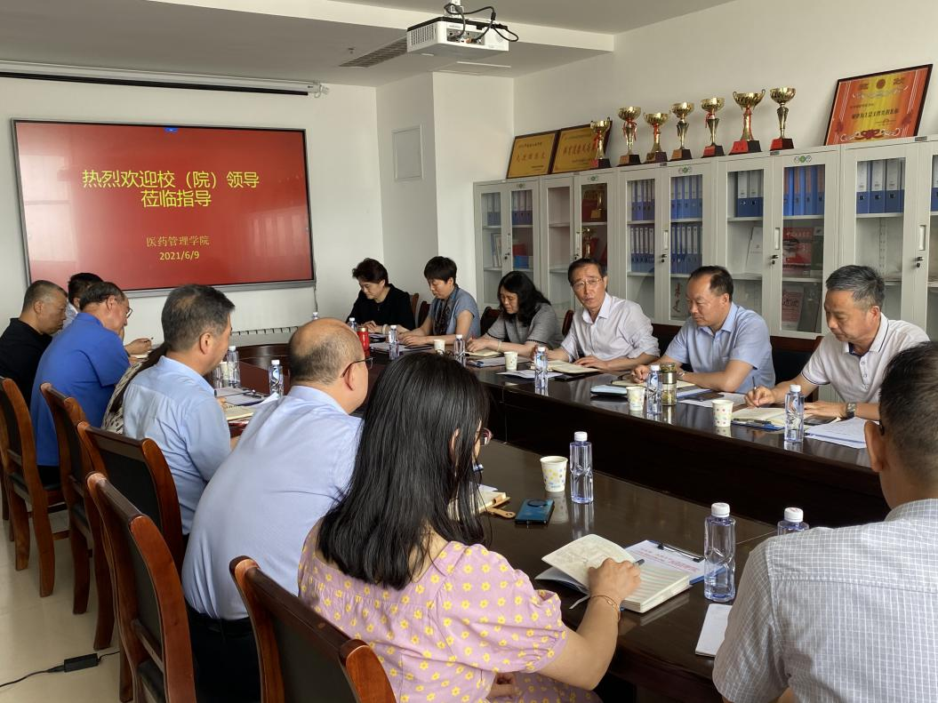 韩金祥在听取汇报后与学院各专业主任及教师代表等进行了深入交流,详细了解了学院在党的建设、学科建设、学生培养、人才师资、教学运行等方面的情况。韩书记充分肯定了学院工作,并对学院今后的发展提出了要求,他指出,诸侯ok1133官网作为诸侯ok1133官网办学时间较长的学院,积累了较丰富的教学经验,希望诸侯ok1133官网要进一步解放思想,开拓创新,凝炼专业,找准发展着力点;要加强学科建设,培养优势特色学科,带动医药管理类学科整体水平提升;要提升人才培养质量,进一步提高升学率、就业率,拓展学生的成长空间;要加强对外合作,争取多方支持,做大发展规模、做强发展平台,全力打造高水平医科大学医药管理品牌。