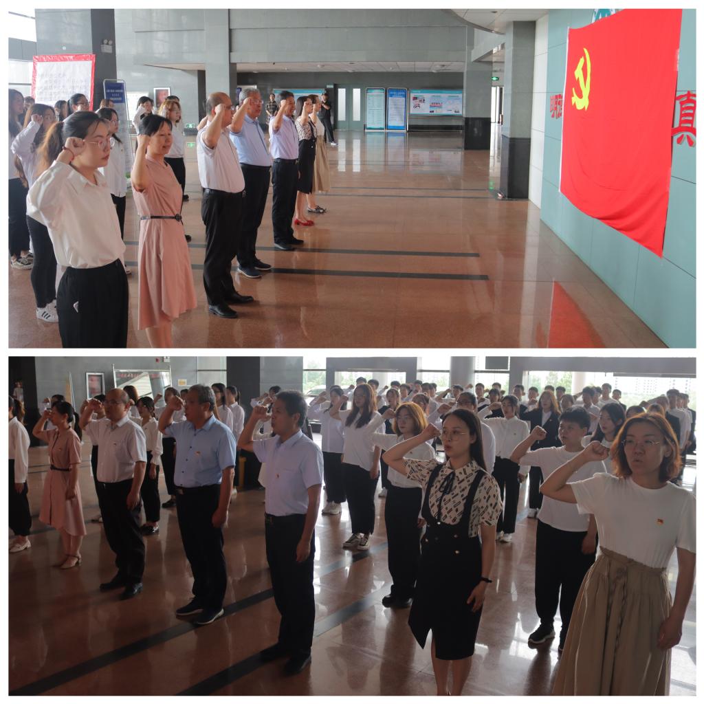 活动伊始,学院领导班子、教师党员代表和纳新党员代表在教学南楼A座大厅重温入党誓词,进行庄重肃穆的宣誓仪式。