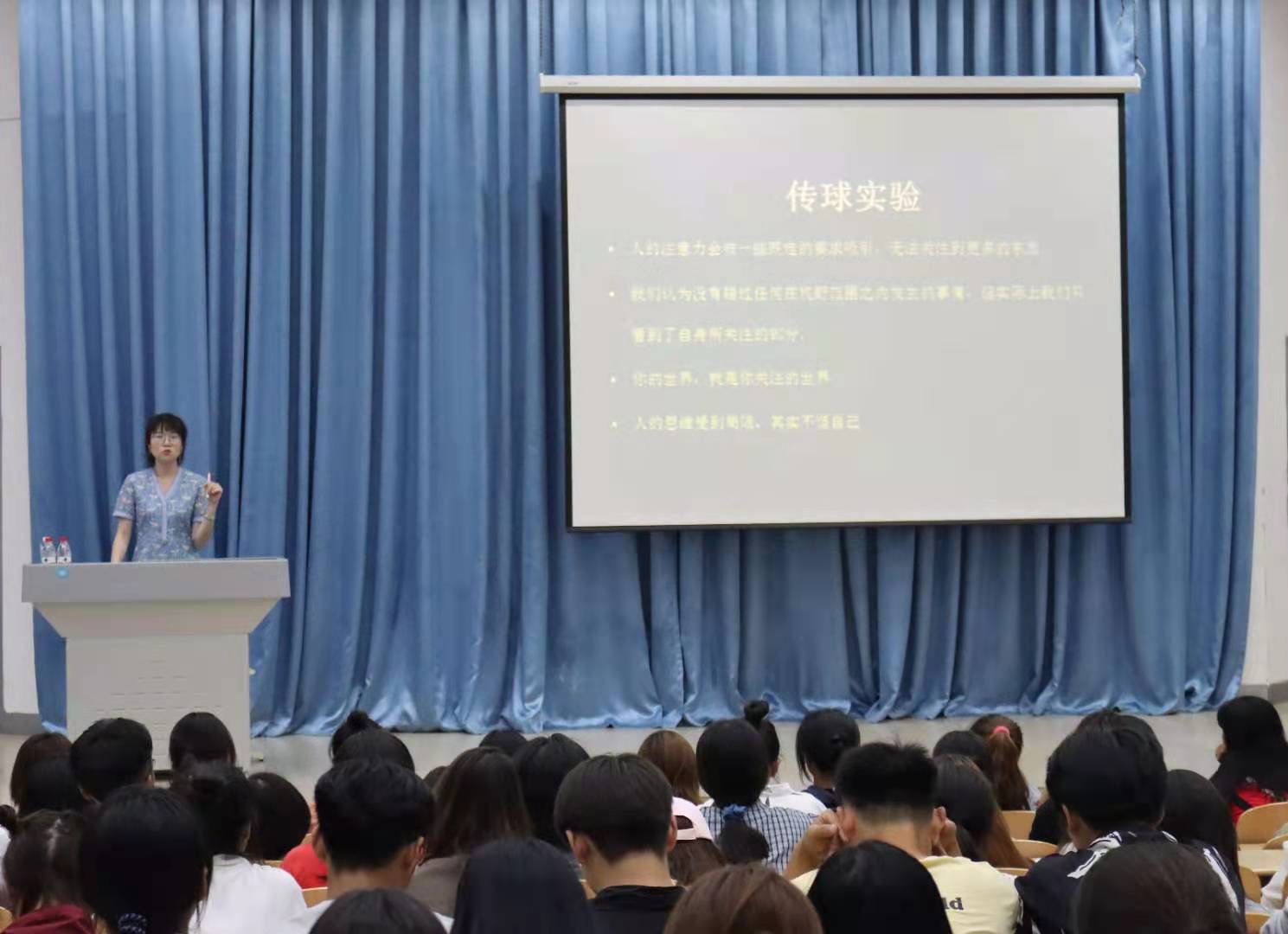 宋亚光主要从我校心理健康教育情况简介、大学生常见心理压力源、大学生心理健康常识和心理健康的自我维护四个方面来为同学们讲述。首先,宋亚光播放了一个白人传球的实验视频,并提出相关问题,以此来向大家说明集中注意力是大学生必备的心理健康行为。随后,从多方面,多角度来分析可能导致同学们出现心理疾病的压力源头,如果同学们因为压力过大出现抑郁、焦虑和烦闷的情绪问题,可以随时到大学生心理健康教育中心来寻求帮助。宋亚光还鼓励同学们当遇到心理问题时可以尝试“说出来、看出来、听出来、写出来、读出来、呼出来、走出来”的七种方法,并告诉同学们心理疾病不可怕,关键的是勇于面对心理疾病,敢于在黑暗中寻找光明。讲座最后,宋亚光希望同学们可以多多参与到大学生心理健康教育中心举办的各项活动中锻炼自己,让自己远离心理疾病。