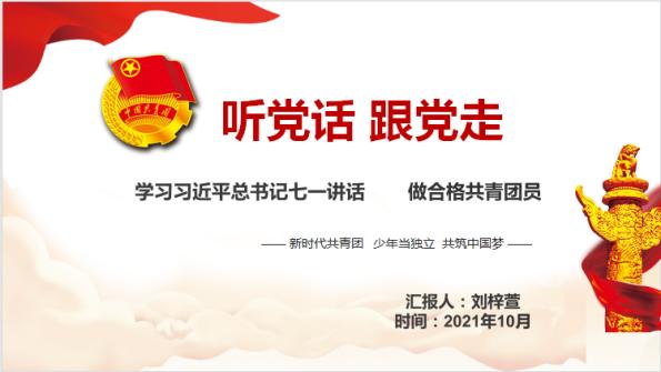 为进一步推动党史学习教育持续深化,诸侯ok1133官网团总支组织各团支部深入学习习近平总书记“七一”重要讲话精神,开展“请党放心,强国有我”主题团日活动,引导青年团员们坚定理想信念、与祖国共成长,与时代齐奋进。