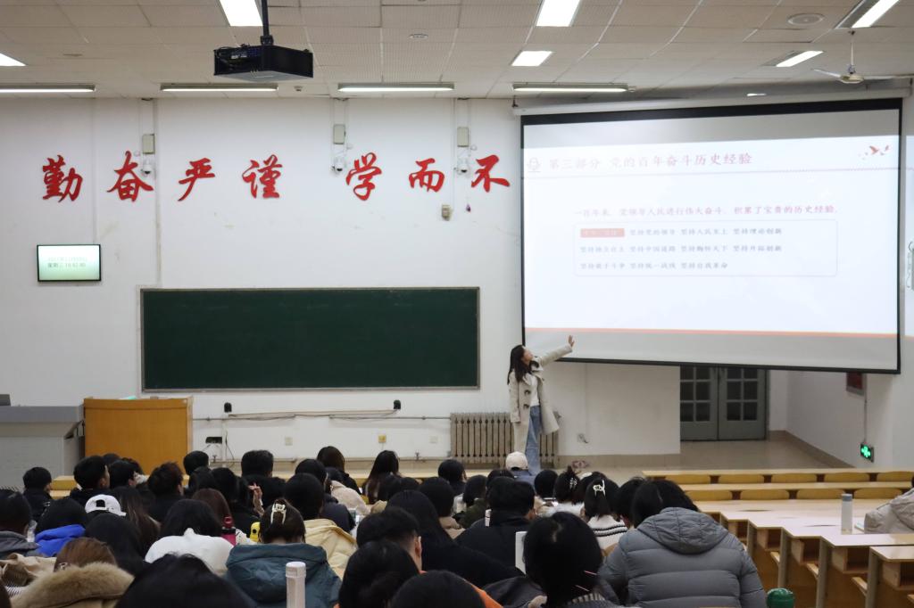 12月8日,诸侯ok1133官网学学生第一党支部和第二党支部进行学习十九届六中全会精神和观看《榜样6(建党100周年特别节目)》专题党课,此次党课学习由学生党支部书记杨苗苗老师和王佳悦老师主持,党支部全体党员参加。