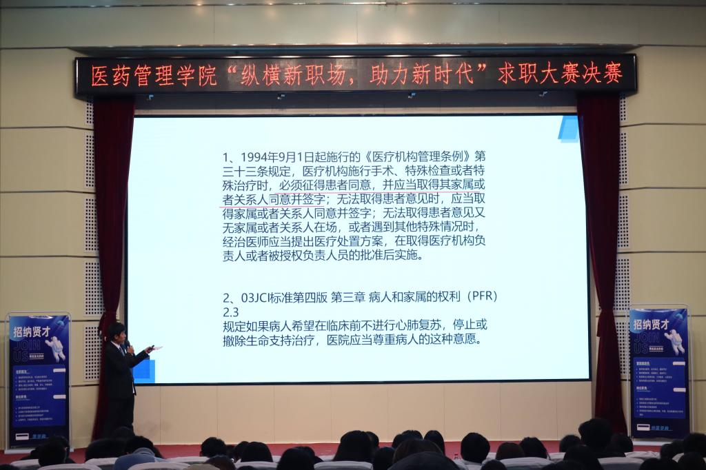 本次大赛邀请了诸侯ok1133官网老师崔行武、王爱敏、展恩来、石礼华、辅导员王佳悦和杨苗苗担任评委及嘉宾。大赛共分为自我介绍、知识抢答、情景模拟、案例分析和评委点评五个环节。大赛前所有选手按照专业分为非医学类和医学类两组。大赛首先由六位选手依次进行自我介绍。在第二个环节知识抢答中,选手们按照分组分别展开比拼。选手们在第二环节的比拼中冷静思考,积极抢答,回答正确率极高,这充分展示了同学们扎实的基础知识。在第三个环节情景模拟中,选手们根据不同情景向观众展示了在求职中遇到不同困难时所需要的各种应对技巧。在第四个环节案例分析中,选手们根据不同的案例展开分析,应对自如的临场反应体现出选手们优秀的心理素质和专业的分析能力。选手作答完毕后,评委们分别从情景模拟和案例分析两个环节对六位选手的表现进行点评和打分。经过激烈的比拼,最终刘展宏、段续栋两位同学获得大赛一等奖;李晨晨、唐昊获得大赛二等奖;赵琪、厉见艳获得大赛三等奖。