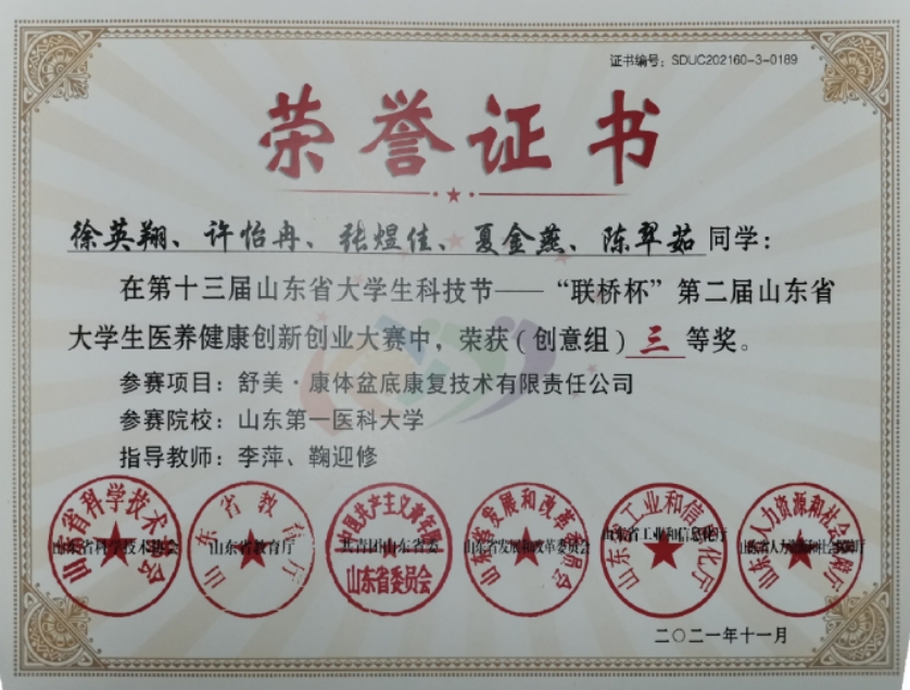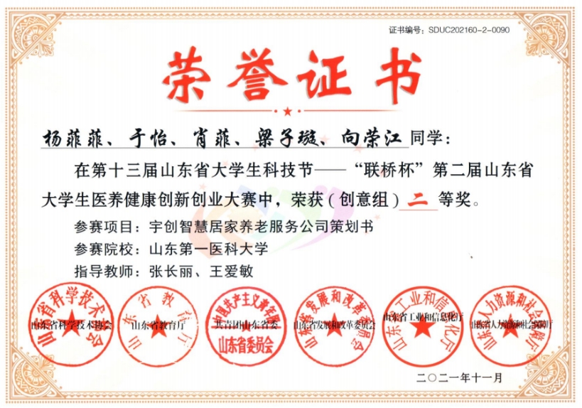 近日,由山东省科协、山东省教育厅、共青团山东省委、山东省发展改革委、山东省工业和信息化厅、山东省人力资源社会保障厅联合主办的第二届山东省大学生医养健康创新创业大赛决赛落下帷幕。诸侯ok1133官网派出四个团队参赛,取得了团体二等奖一项、三等奖三项的优异成绩。