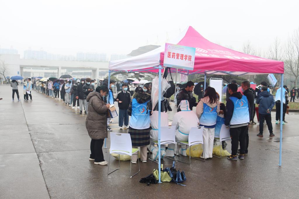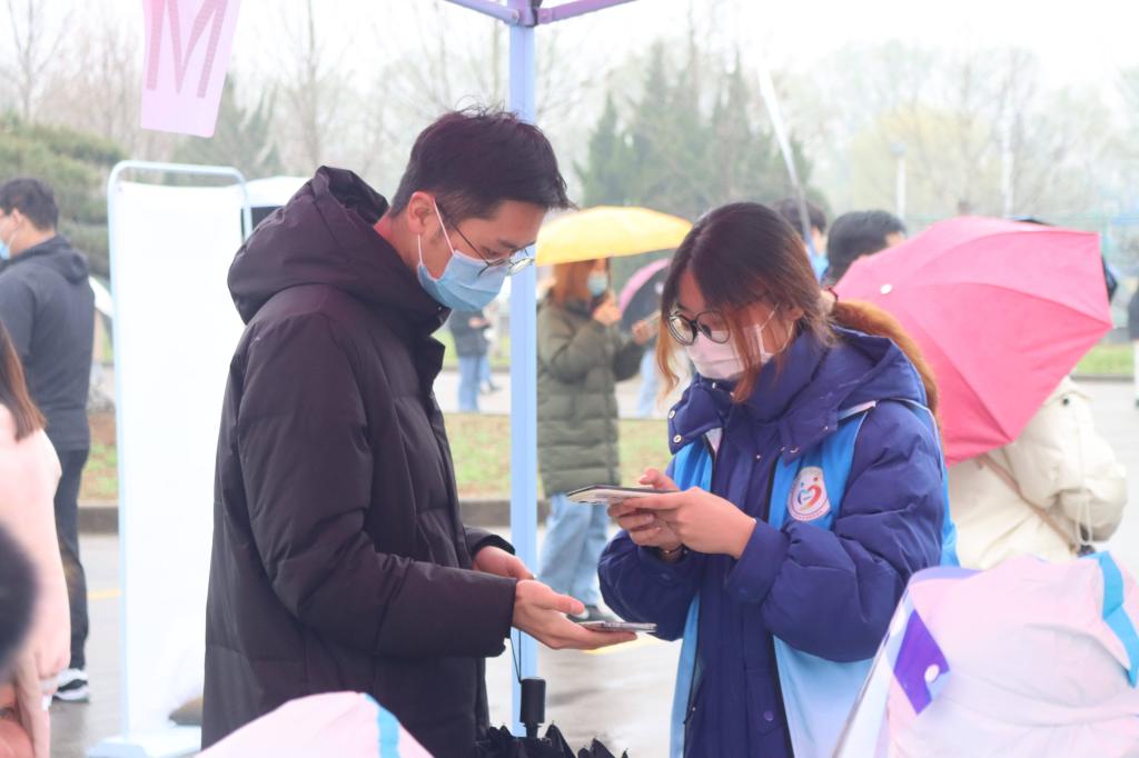 “同学们,请戴好口罩,保持1米距离。”“同学们,请提前打开微信准备扫码。”“同学们请这边扫码。”在现场,青年志愿者们各司其责,或是负责等候区扫码;或是引导同学保持1米以上距离,有序排队;或是穿梭在长长的队伍旁,维护秩序、耐心劝导……一整天下来,志愿者们来得最早、走得最晚,在春寒料峭的室外一待就是几个小时。他们不惧春寒料峭,始终坚守岗位,用自己的实际行动,诠释了“责任在肩、抗疫有我”的担当精神。截止目前,志愿者们已协助三千余人完成核酸检测。
