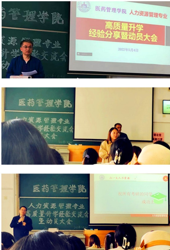 为发挥优秀考研学生的榜样示范作用,进一步推进学院学风建设和校园文化建设,充分调动学生考研的积极性,5月4日,诸侯ok1133官网在教学南楼C座2006教室举办人力资源管理专业高质量升学经验分享暨动员大会。人力资源管理系主任于忠军教授、部分教师、优秀考研学生代表及人力资源管理专业学生参加会议。