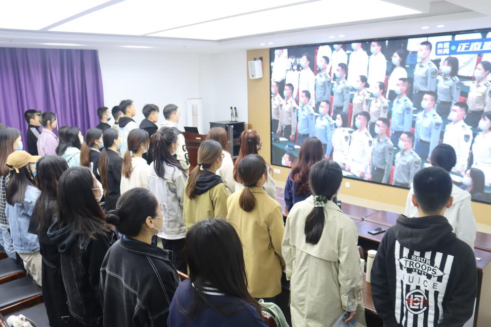 会议伊始,在场同学与大会现场参会人员一道起立、同唱《中华人民共和国国歌》。大会上中共中央总书记、国家主席、中央军委主席习近平发表重要讲话,习近平总书记指出:坚定不移跟党走,为党和人民奋斗是共青团的初心使命。同时肯定了青年在时代中发挥的先进力量以及共青团一百年来坚定理想、矢志不渝形成的宝贵经验,提出了四点希望,激励广大团员青年在实现中华民族伟大复兴中国梦的新征程上奋勇前进。