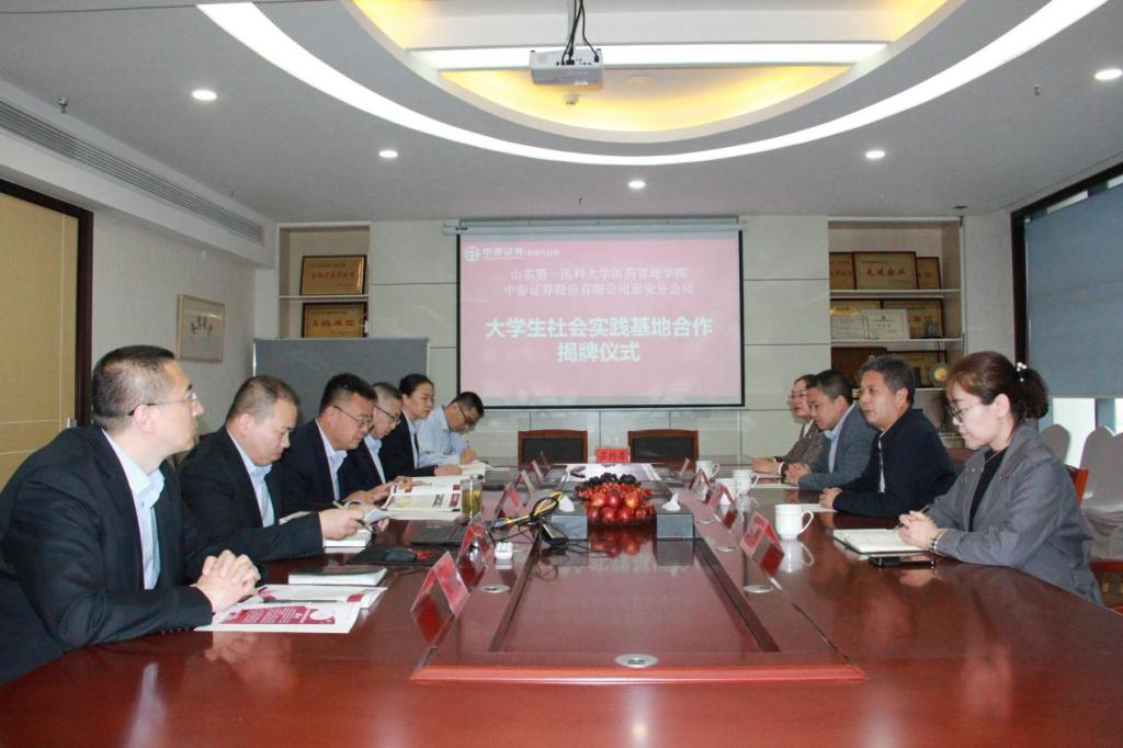 陈志伟介绍了中泰证券及泰安分公司的发展历程、基本概况、经营情况以及人才储备和培养的情况,期待双方在创新协同育人合作办学模式、精准对接专业人才培养、就业实习、企业培训、党建工作等方面发挥各自优势,促进共同发展。