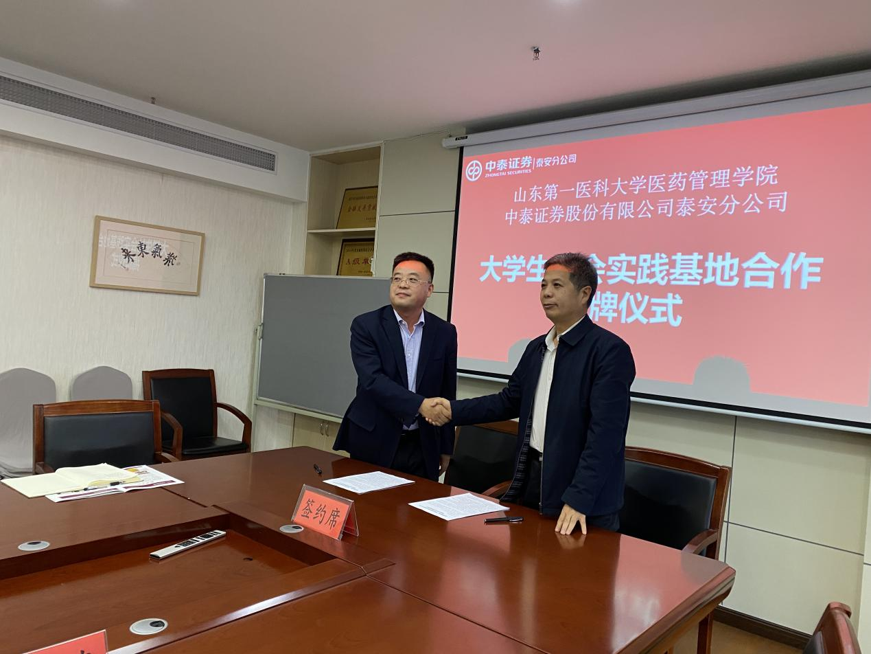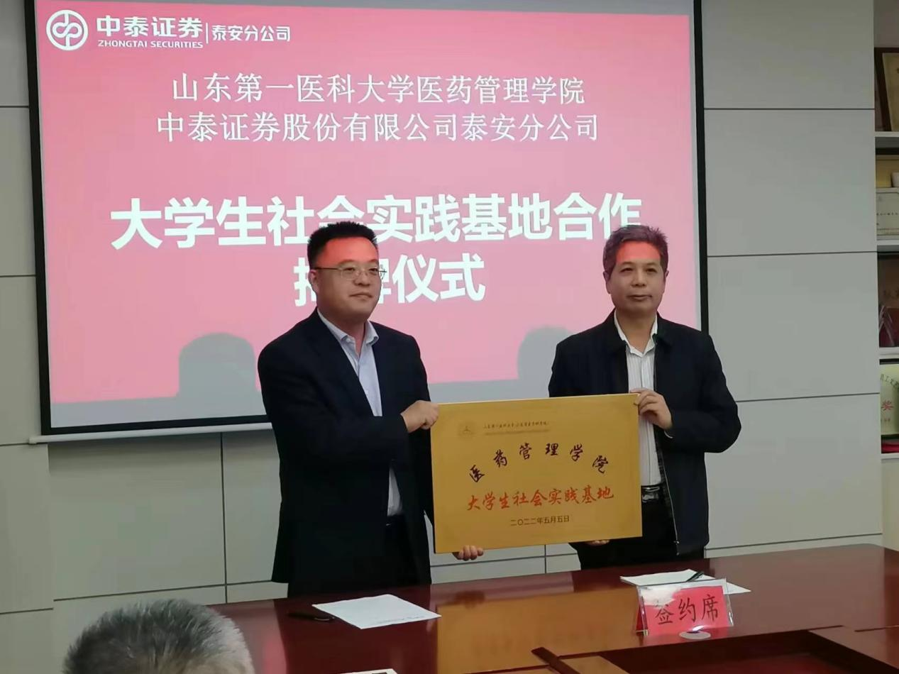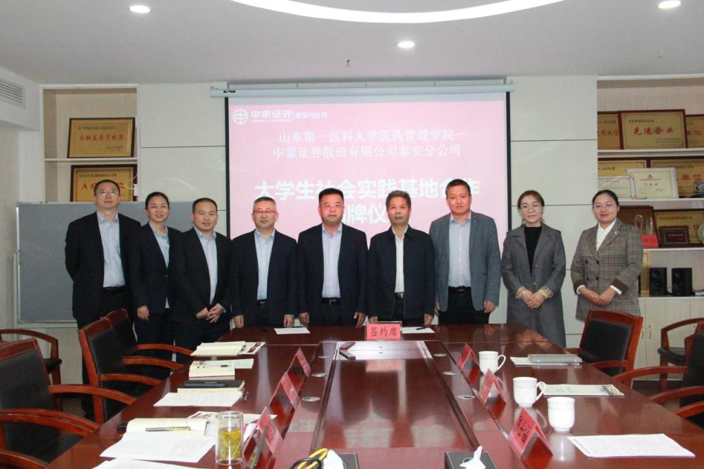 为提升大学生社会实践能力,进一步落实立德树人的根本任务,不断创新“三全育人”工作机制,5月9日,诸侯ok1133官网赴中泰证券股份有限公司泰安分公司建立大学生社会实践基地。诸侯ok1133官网院长陈士福,公司党委书记、总经理陈志伟出席签约仪式并致辞。