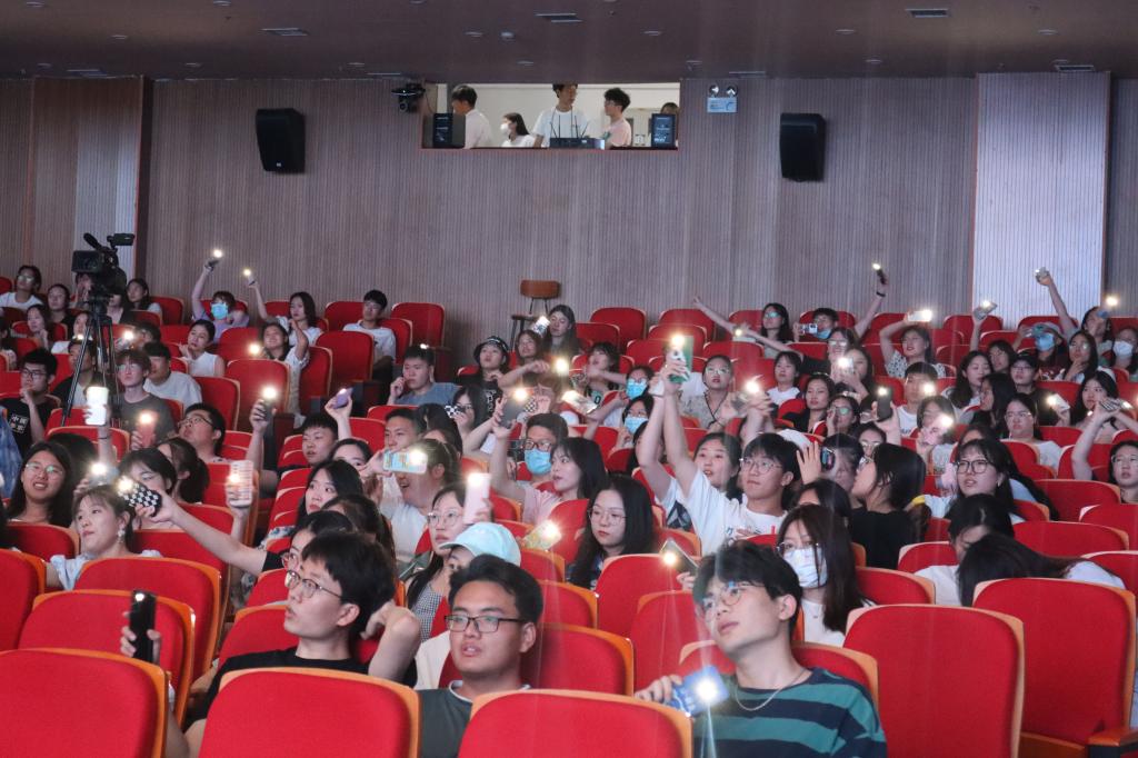 在信箱纸条互动环节中,全场老师同学一齐传递纸条,在纸条的文字中寄托四年美好的师生情和同学情。最后,在场毕业生一同合唱了歌曲《夜空中最亮的星》,优美的歌声与结尾视频《再见》完美结合,将毕业生对学院的不舍和对彼此的祝福完美诠释,本次毕业晚会在悠扬的歌声之中圆满结束。