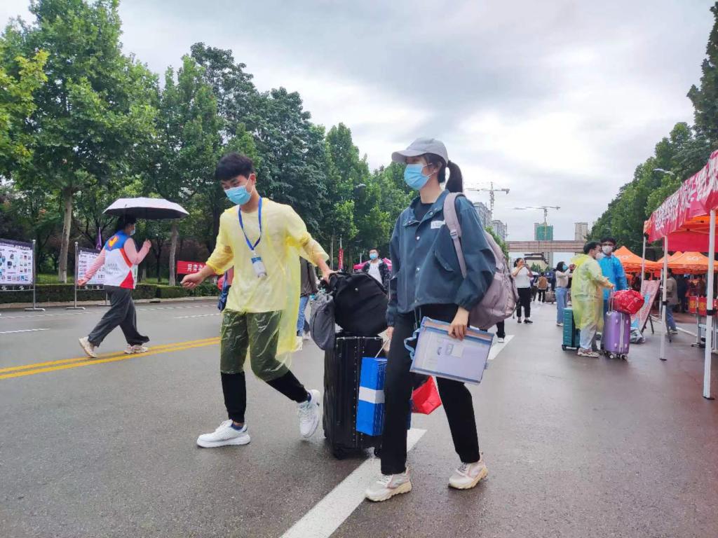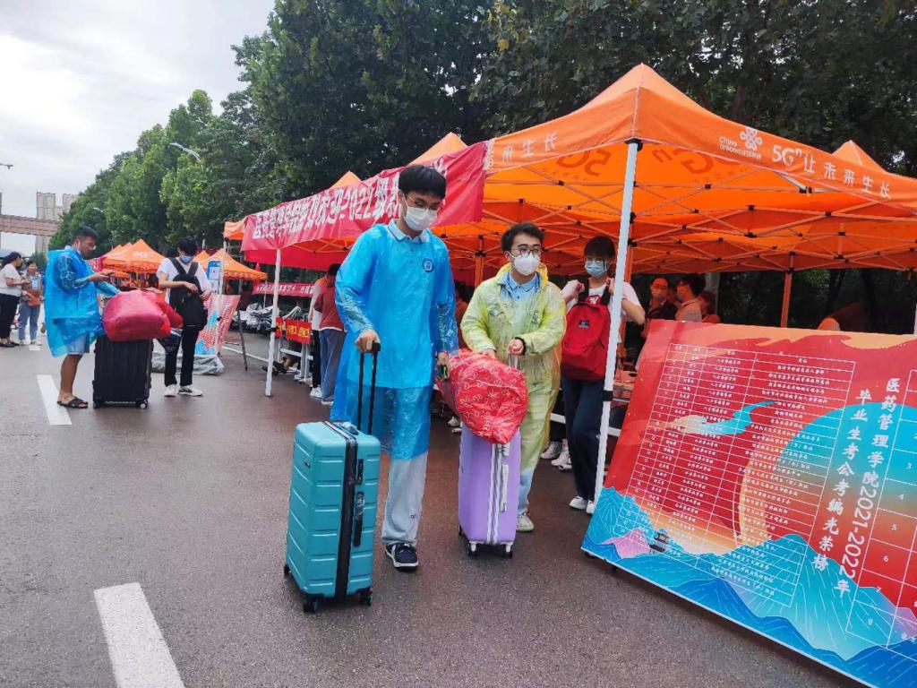热情似火,以心迎新。虽然天公不作美,连绵的秋雨给新生报到带来了一些麻烦,但是在充分地准备工作下,迎新工作仍然是有序地进行。清晨,由学院学工办全体老师、新生辅导员、学生党员以及学生志愿者组成的迎新队伍早已分别在校外接站点、校内新生报到处等候。七点半开始,新生们陆续从接站点来到到校报到,新生入校时,首先要在东门进行体温检测,行程码、健康码和48h内核酸证明核验,录入人脸信息,核验无误后由迎新志愿者“一对一”陪同完成注册、宿舍分配、领取物资和校园卡办理等事宜。在迎新过程中,老师和志愿者们耐心地解答同学们的疑问,介绍入校注意事项。报到期间,由于雨势变大,考虑到同学们行李较多,被褥易被打湿,任纬兵书记及时联系后勤管理部协调校园巴士协助转运新生行李,用细致、贴心、暖心的服务让每一位新生都感受到了诸侯ok1133官网这个大家庭的温暖。