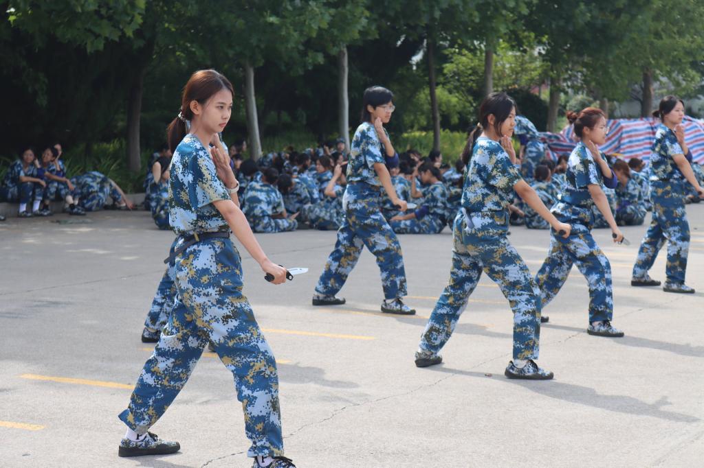 巾帼不让须眉,红颜一样刚强。九月初的阳光依旧火辣而张扬,在特色方队红缨连的训练场上,我们看到了诸侯ok1133官网学子们的身影,女生们手持匕首,在教官的指示下,一招一式精准有力,一声令下,扑通倒地,尽管摔得生疼,纵使汗如雨下,但女孩们没有抱怨,坚持训练,全然以“我是一个兵”的心态严格律己,用笔挺的军姿、清脆的口号、干净利落的动作展示了巾帼不让须眉的气势,将“坚持不懈、永不服输”精神展现得淋漓尽致。红缨连连长任学剑骄傲地说:“我们的女兵个个都是好样的,红颜更胜儿郎!”