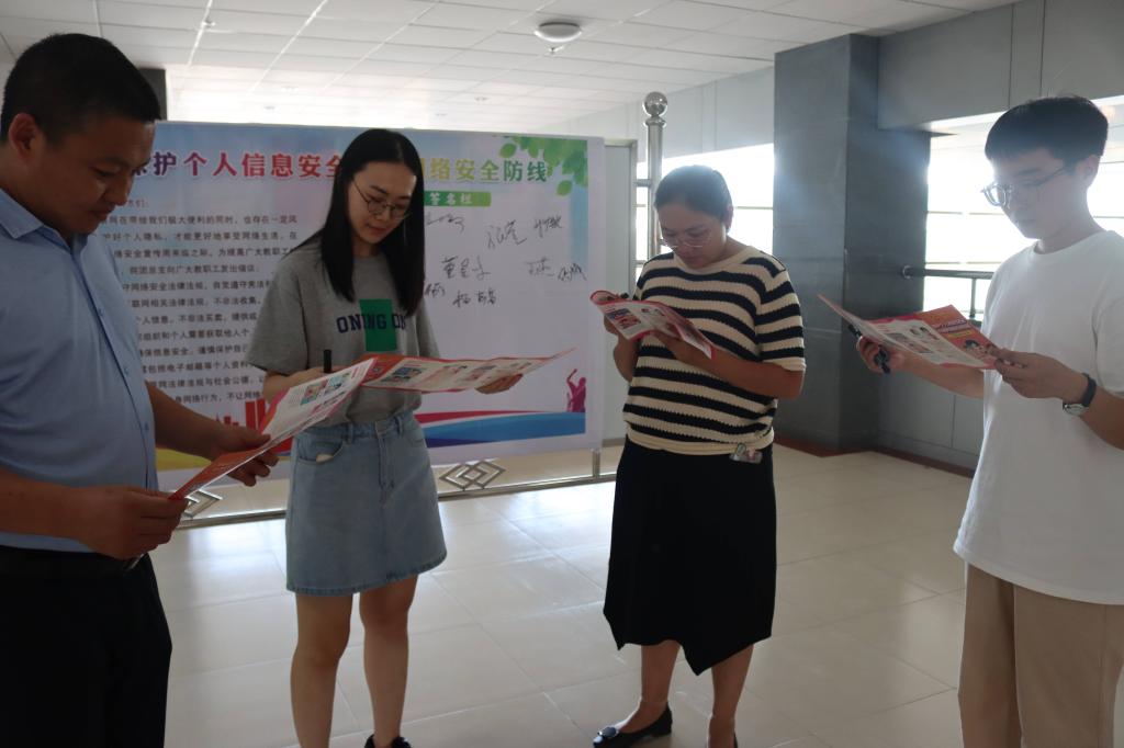 做好网络安全宣传,需要大家共同参与。学院分会通过发放学习网络安全知识折页和共同签订网络安全倡议书等形式加强网络安全宣传周期间的氛围营造,引导老师们重视网络安全教育。
