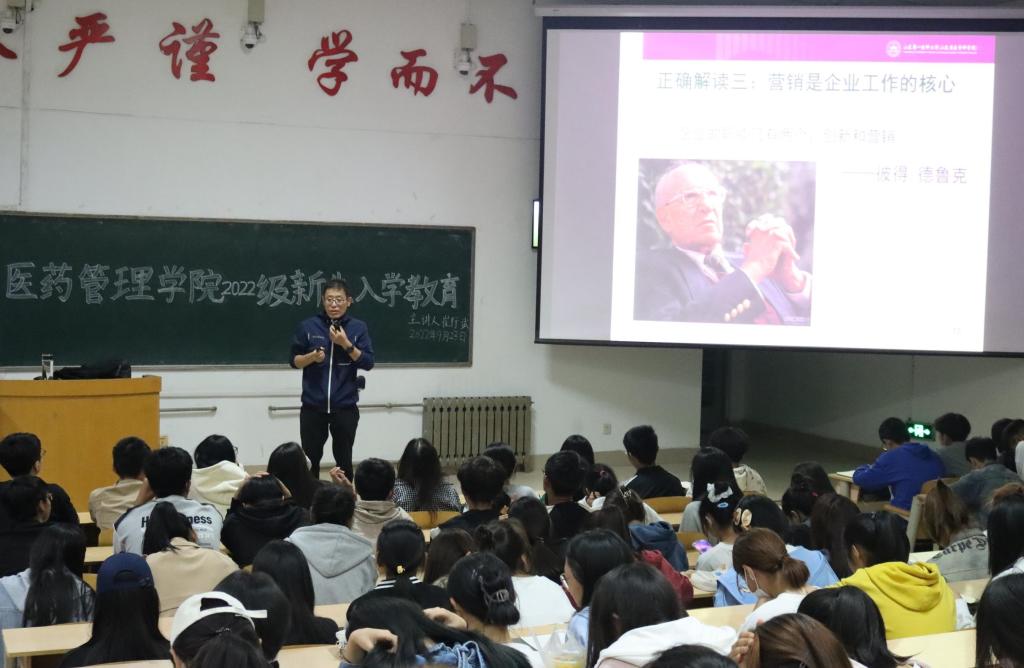 市场营销系主任崔行武老师从市场营销的内涵、未来发展、以及学习方法对市场营销专业展开详细介绍。首先,崔行武纠正了同学们的一些认知错误,帮助同学们真正了解到市场营销学科的含义。随后,崔行武从市场营销的考研率、就业率着手,对市场营销专业未来的发展情况进行深入解析,他希望同学们在今后的市场营销学习中能真正做到医管结合。最后,崔行武结合自身的教学案例,为同学们提供了科学有效的学习方法,帮助同学们更好地开展专业学习。