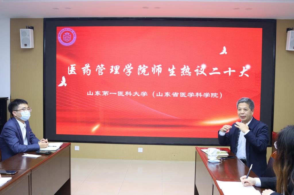 副院长陈海玉:作为一名高校负责教学科研的中层管理人员,要结合自己工作的实际,充分运用多种形式,对习近平总书记的报告进行深入学习,深刻领会精神实质,不断提升教学管理能力:1、教学方面,积极推进新医科和新文科相融合的专业建设改革。深化人才培养模式改革,优化以学生为中心的培养方案,使其更加适应社会发展和校(院)特色。推进教学模式改革,内引外联,争取社会资源。遵循“宽口径、厚基础、重能力、求创新”全面发展的培养模式,提高招生的位次,提升考研率和就业率。2、科研方面,围绕医工、医理、医文、医管等专业交叉融合,建立跨学院的协同攻关和资源共享机制,凝练研究方向,组建学院创新团队。努力挖掘科研项目申报潜力,保证科研项目的稳步增长。