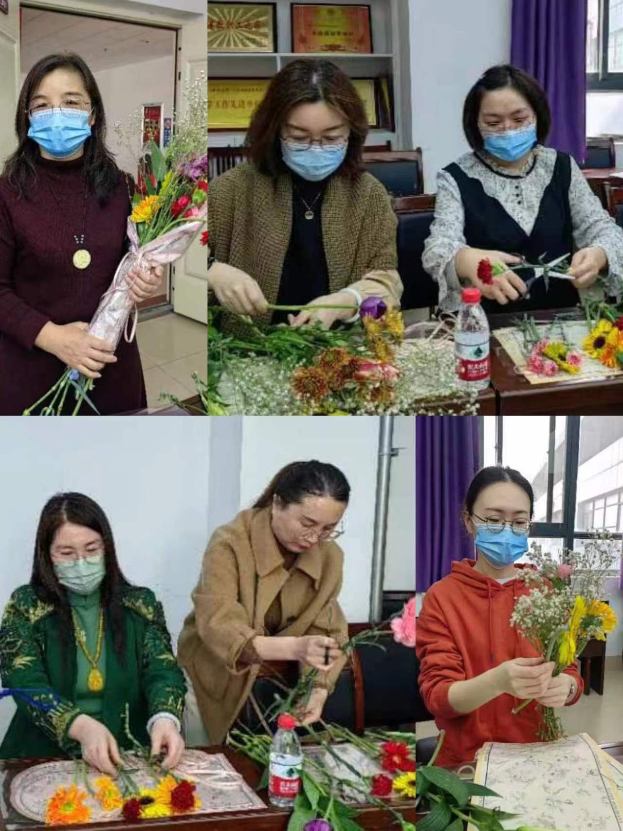 此次活动学院高度重视、精心组织,活动中,老师们首先观看学习了插花相关视频,随后便是“春暖花开”插花环节,教师们用郁金香、康乃馨等各种鲜切花与各类包装材料灵活搭配,组合出一捧捧独一无二的精美花束,活动现场气氛热烈,充满了欢声笑语,并手捧鲜花合影留念。