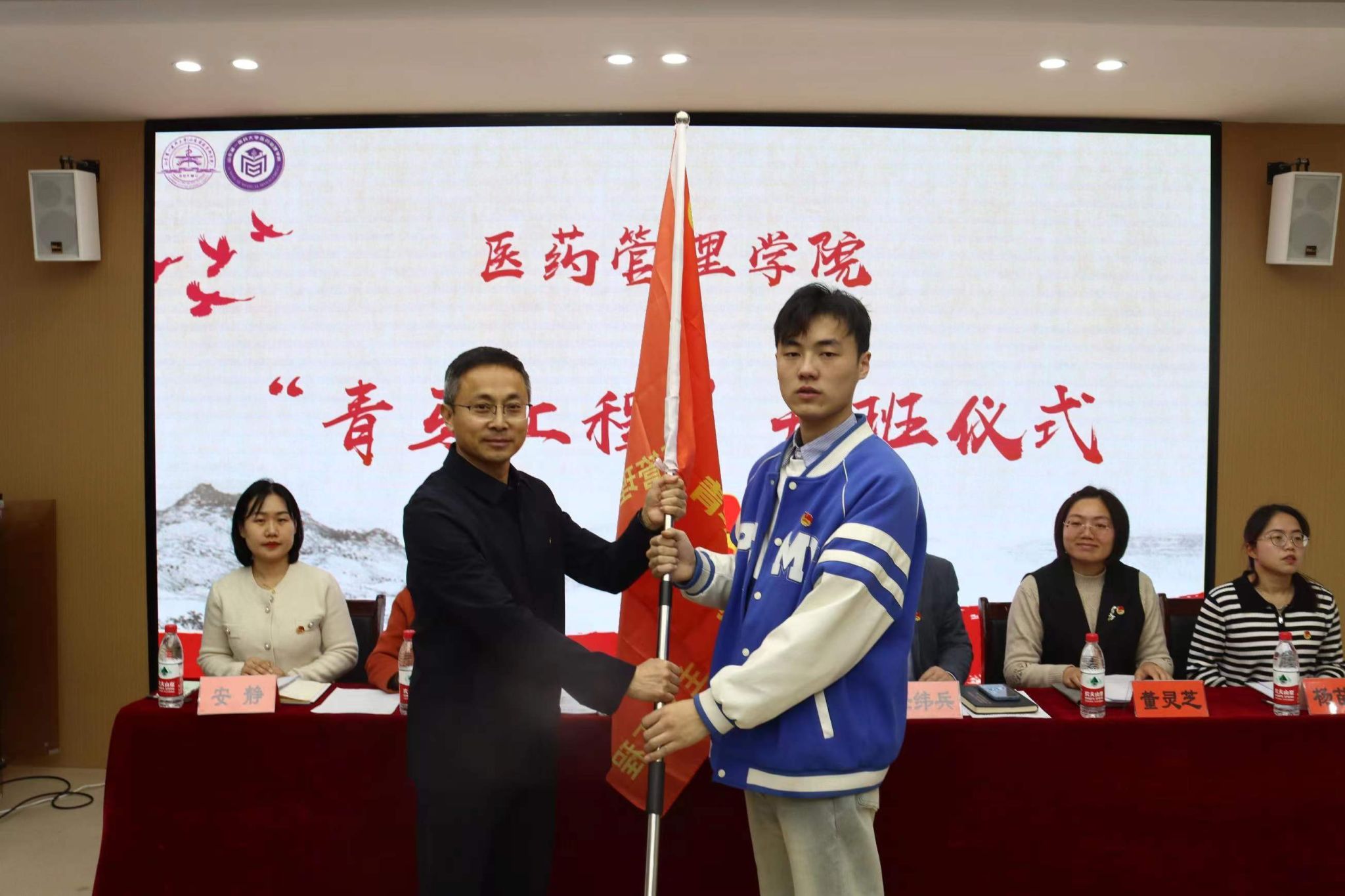 本期“青年马克思主义者培养工程”开班仪式在庄严的国歌声中拉开了序幕。党委副书记任纬兵在开班仪式上致辞,他强调了青马工程对培养社会主义新时代青年的重要作用,同时对培训班的开课表示热烈祝贺。周晓芳为大家介绍了青马工程、董灵芝宣读了青马学员须知、杨苗苗宣读了考核标准,为青马班学员详细介绍了本次培训的方案和《学员规章制度》,同时提醒青马学员要严格遵守青马班的纪律要求和规章制度,要求同学们将规矩意识内化于心,外化于行,对标执行,珍惜学习机会。党委书记杜江山宣布开班并为“青马工程”培训班代表授旗,一面旗帜代表着一种信仰,相信学员们在未来的课程学习中将收获更多成长与进步。学员代表靳雯如发言,她表示,青马工程给了她见贤思齐、展示自己的机会,从中受益匪浅。“未来属于青年,希望寄予青年”,她号召全体学员要做坚定的马克思主义者,勇担时代使命,传承红色基因、传递青年声音,在实现中华民族伟大复兴的中国梦中展现青春担当。