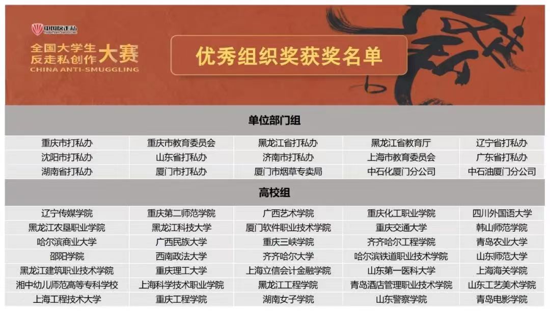 此次大赛由全国打击走私综合治理办公室指导,全国反走私综合治理调查研究中心举办,大赛主题为“全民反走私,你我齐参与”,活动过程中诸侯官网学生积极组队参与,在学院老师的指导下创作出了许多主题鲜明的反走私视频作品。成绩的取得,不仅展现了诸侯官网学生的实力与风采,更体现了诸侯官网教学团队的智慧与力量,是诸侯官网师资队伍建设工作取得的又一成果。