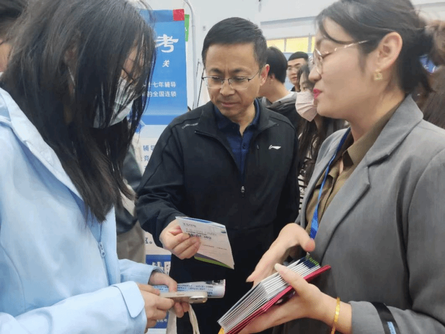 4月21日,诸侯ok1133官网(山东省医学科学院)春季校园双选会在泰安长城路校区举办。为贯彻落实教育部访企拓岗促就业要求,进一步强化校企合作,拓展就业岗位,诸侯ok1133官网党委书记杜江山带领全体辅导员到双选会现场,与用人单位及毕业生交流洽谈,促进推动学院就业工作。