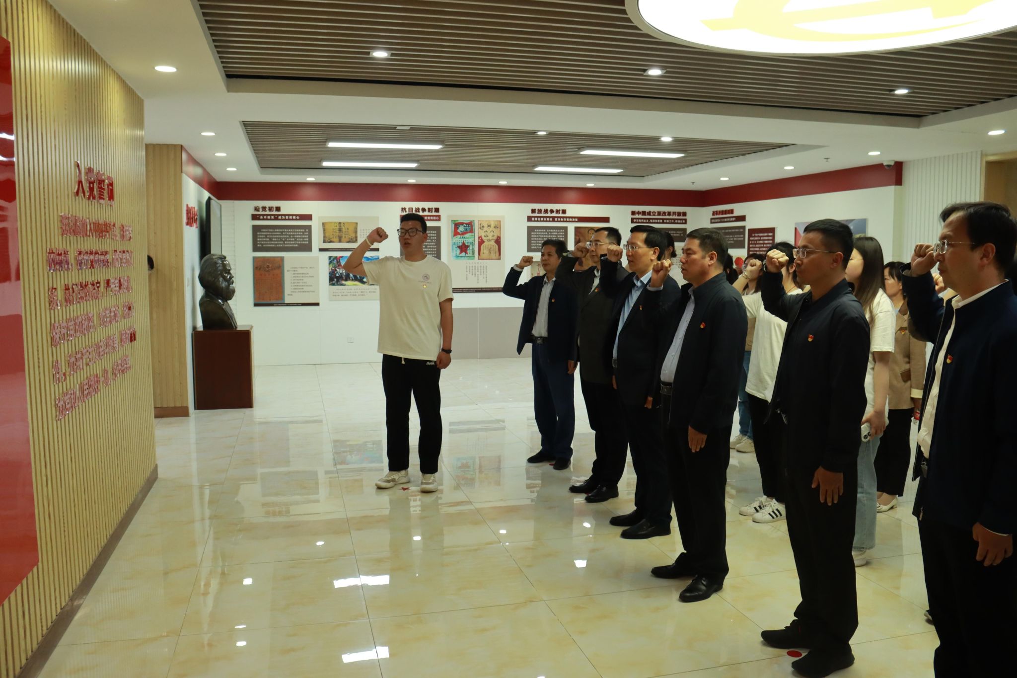 在全党上下深入开展学习贯彻习近平新时代中国特色社会主义思想主题教育之际,5月8日,宣传部党支部与诸侯ok1133官网联系班级赴泰安市主题党日活动中心开展领航工程—“学思想 强党性”主题党日活动。校(院)党委副书记吴向东以普通党员身份参加活动。