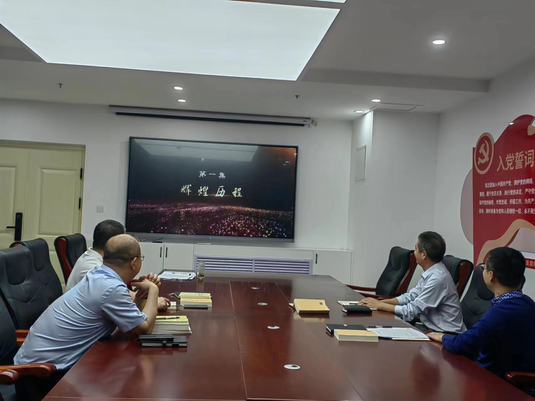 参会人员首先集体观看了由中共中央宣传部、中共中央统战部、国家民族事务委员会、中央广播电视总台联合摄制的专题片《同心共筑中国梦》第一集《辉煌历程》。