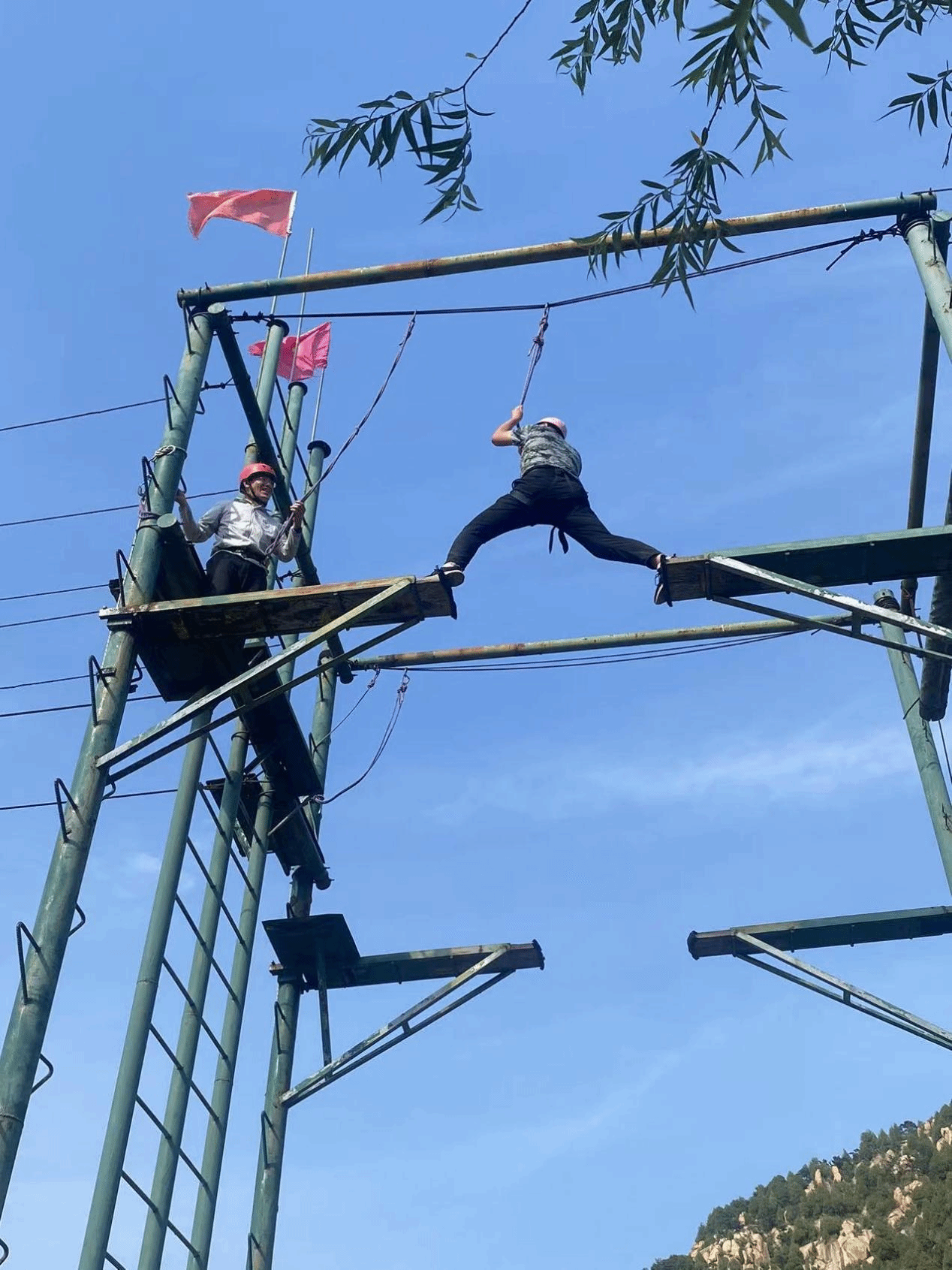 本次素质拓展训练将同学们分成三个小组,在信任背摔、高空断桥、穿越沼泽地、逃生墙等活动中进行素质拓展。在培训中心指导老师的带领下,同学们迅速进入状态,配合协作,突破自我,在奔跑中挥洒青春的汗水,迸发出团结向上的奋进力量。活动中,同学们认真了解规则,反复练习、磨合,齐心协力,默契配合,克服高空恐惧,不断战胜自己。尤其在逃生墙环节中,女生们踩过男生的臂膀登上高墙,男生们用坚强的意志支撑着摇晃的身体,不顾手臂疼痛,坚定的保障了每一位女同学安全顺利通过,圆满完成了任务。活动现场气氛热烈,充满了青春的活力,每一个项目都让学生感到个人成功必须建立在团队其他成员的相互支持和共同努力基础之上,要想获得成功,就要做到胆大心细,敢于挑战,战胜自我。