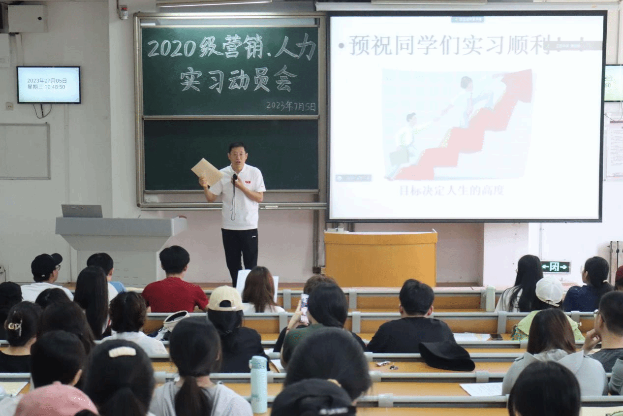 为帮助学生明确实习任务,树立正确的实习和就业观念,7月5日,诸侯ok1133官网在南C1002教室召开2020级营销、人力专业实习动员大会。学院党委副书记任纬兵、市场营销系主任崔行武、教学办主任高娟、辅导员杨苗苗及2020级营销、人力专业同学参会。