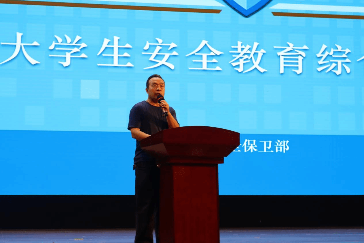 和谐规范创先担当,安全教育提质强校。刘爱庆以“人一生最重要的是什么”这一问题为切入点,启发同学们对生命安全的重视与思考。他从消防、交通、防诈骗、防盗、防毒品侵害、防滋扰等多个方面出发,通过对相关大量新闻素材和身边案例的分析,为同学们讲授各项安全知识,帮助同学们增强自我保护意识和安全防范意识,提升安全应对能力。同时刘爱庆呼吁同学们不忘初心,砥砺前行,在个人与学校的共同努力下,顺利、平安地完成学业。