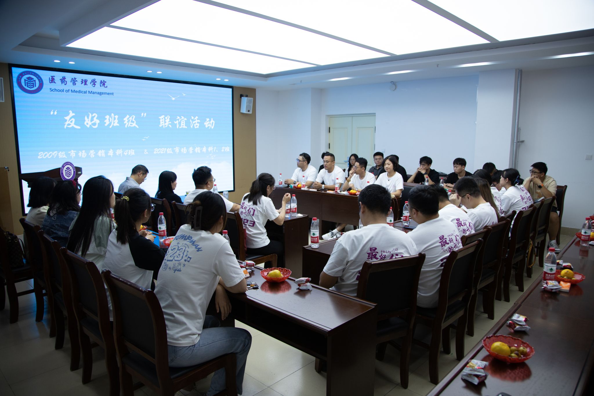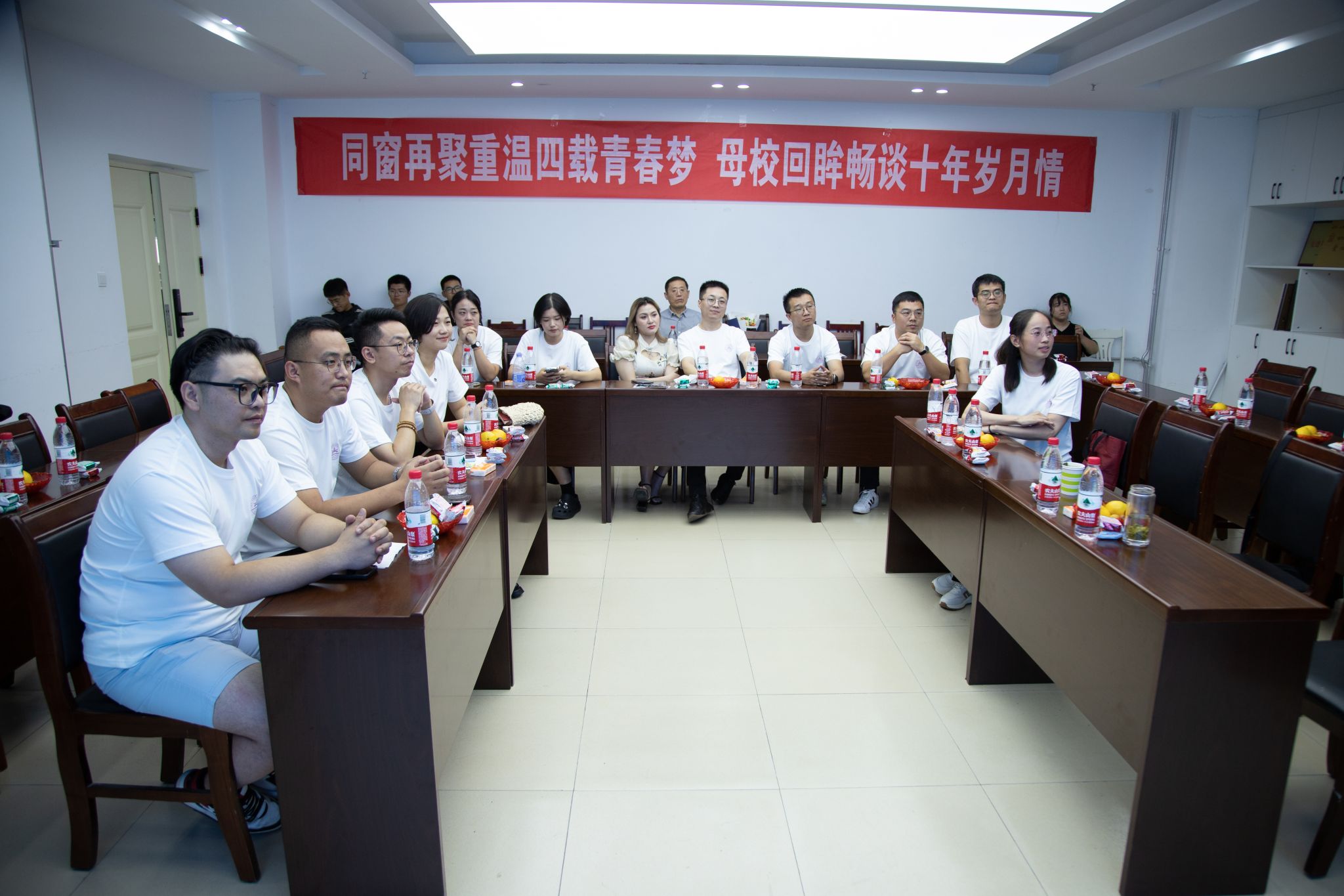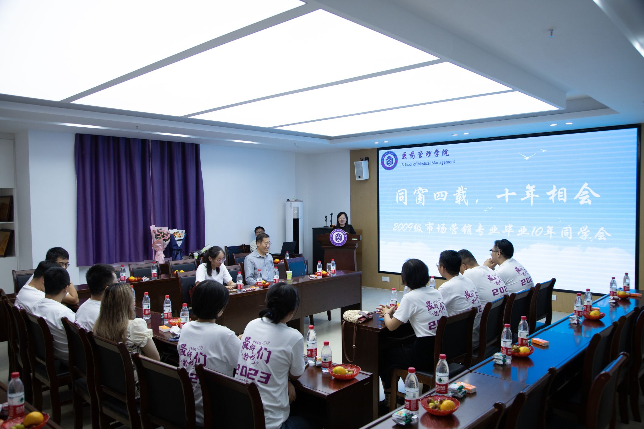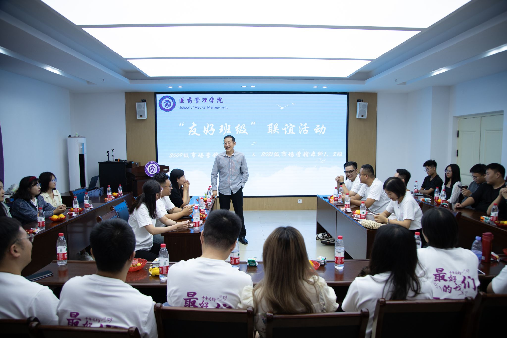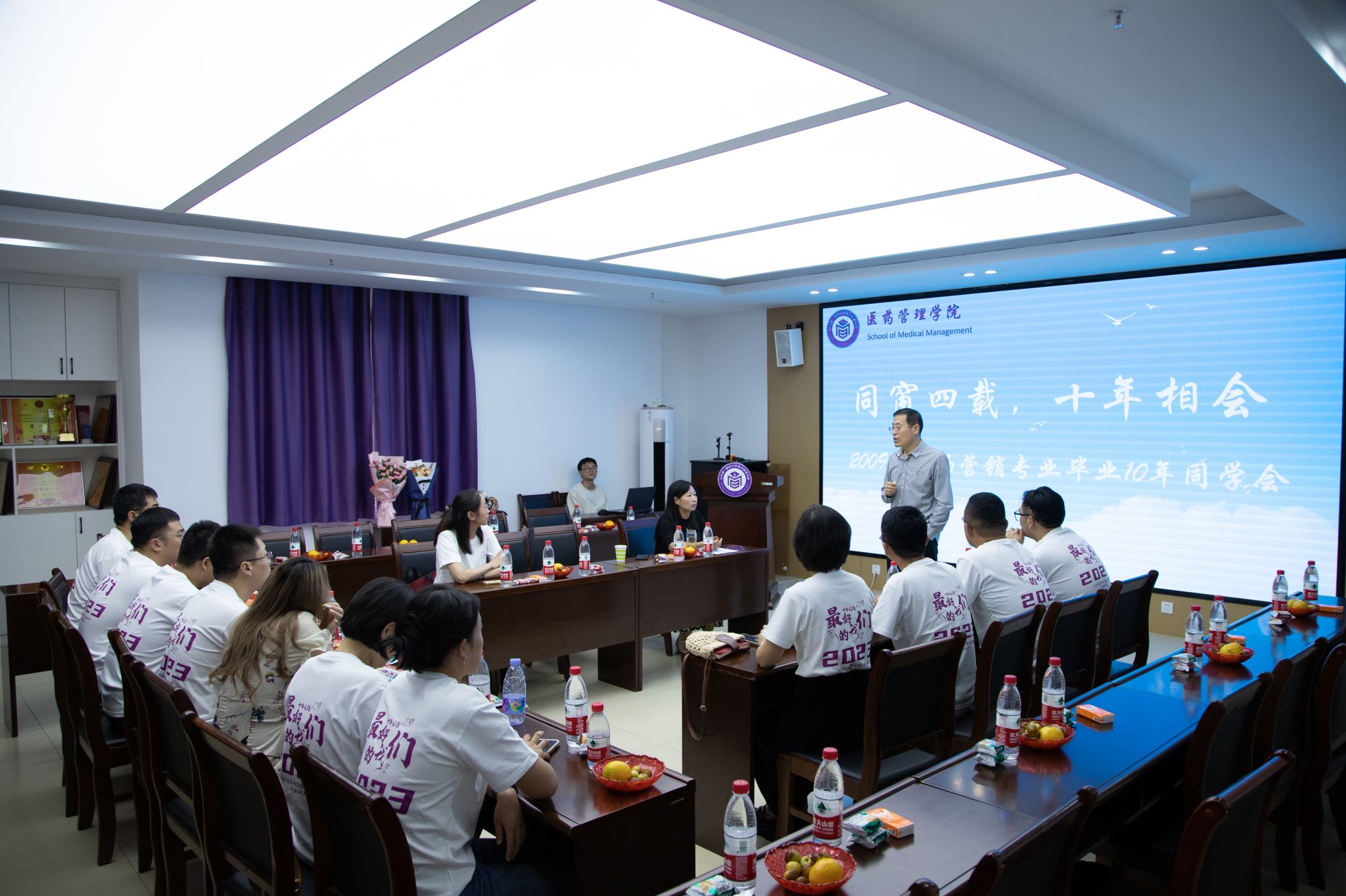 9月23日,诸侯ok1133官网2009级市场营销专业本科4班同学齐聚母校举办毕业十年同学会,并与2021级市场营销本科1、2班开展“友好班级”联谊活动。市场营销系党支部书记王滨老师、系主任崔行武老师及辅导员周晓芳老师参加。