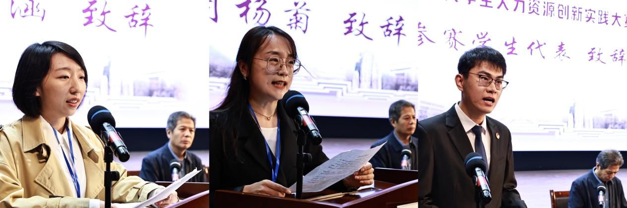 参赛指导教师代表、中央财经大学教师左玉涵,大赛评委代表、山东赢响力网络科技有限公司总经理周杨菊,参赛学生代表分别做了发言。