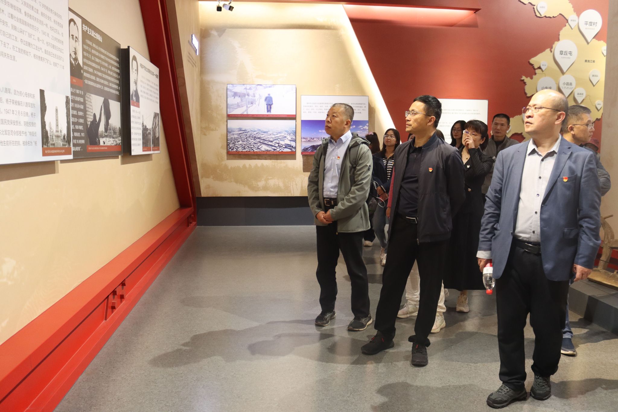 走进“齐鲁第一古村”朱家峪,杜江山一行参观了闯关东展览馆,一张张图片、一件件雕塑和珍贵的文物记录了闯关东精神从历史到现代的代代传承,生动再现了闯关东的光辉岁月,让参展的党员干部深刻感受到了300年来一代代闯关东人民艰苦创业取得的卓越成就,同时也切身领会到了山东人民“不甘落后、不惧风险、敢闯敢创、善作善成”的闯关东精神。