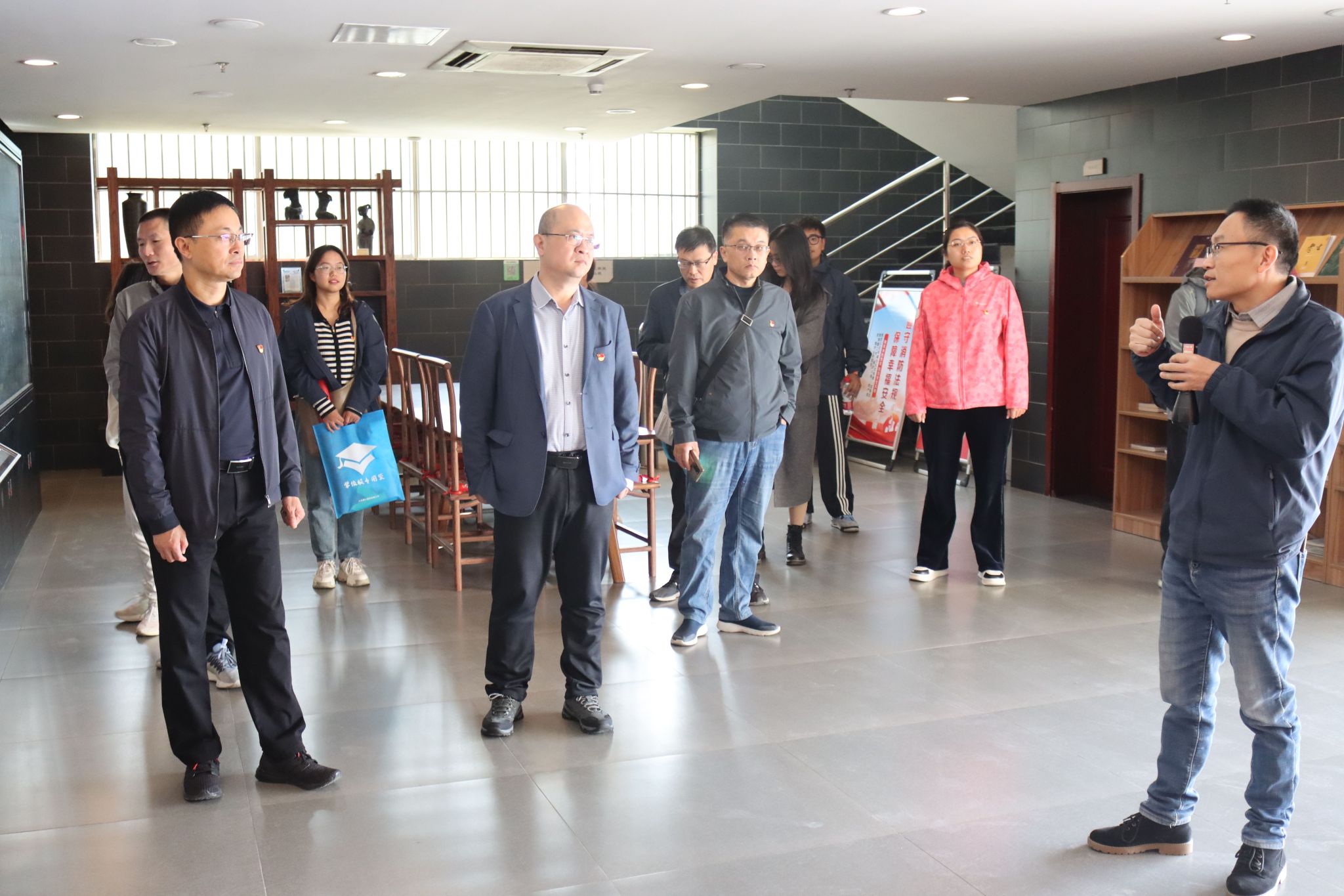 城子崖遗址是中国文化最早的发现地与定居地,具有丰富的文化内涵和深厚的文化底蕴,杜江山一行跟随讲解员来到城子崖遗址博物馆内,博物馆1994年建馆,按照“考古圣地、文明之星”的主旨布展,展示内容由序厅、龙山破晓、文明之星、考古圣地、济南寻根五部分组成,他们仔细观摩了龙山文化、岳石文化时期的文物精品、场景以及汉代济南郡(国)都城--章丘市东平陵故城遗址出土的文物精品,直观地了解到历史文化遗产的重要性和珍贵性,对中华文化的起源、发展和影响有了更深入的理解和认识。随后,大家观看了影片《城子崖》,影片记录了龙山文化的发展脉络和伟大变迁,带领大家进一步领略到了龙山文化的深厚底蕴,增强了全体党员的文化自信和民族自豪感。