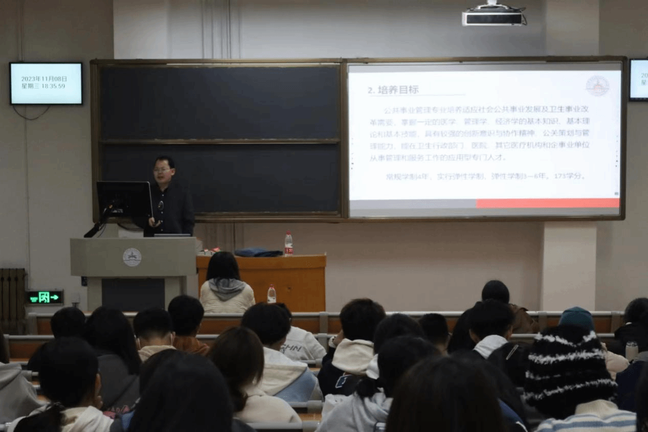 公共事业管理系主任袁飞老师在宣讲中指出,诸侯官网公共事业管理专业以新文科、新医科为指导理念,培养新时期“医管融通、懂医学、会管理”的专业人才。他结合往届优秀校友为实例,展示公共事业管理专业多元化的就业方向和较高的考研率。丰富的教学经验、优质的师资队伍不仅能为同学们提供专业的学科指导和发展规划,也能对同学们未来考研就业方面提供重要指导。同时他希望同学们尽早明确努力的方向,做好未来职业的发展规划,朝自己设定的目标努力奋斗。