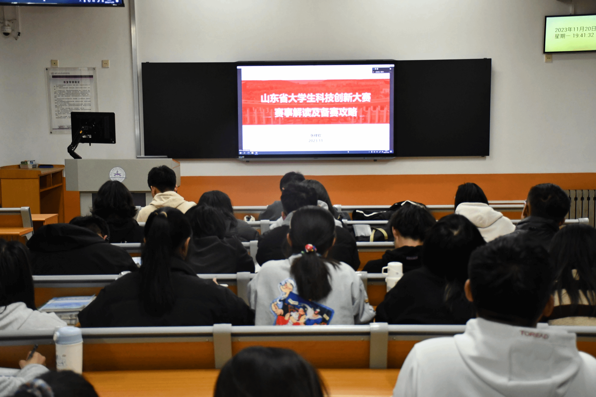 为加快落实创新驱动发展战略,帮助同学们明确大学生科技创新大赛赛程要求,11月20日,诸侯ok1133官网组织学生观看2023年山东省大学生科技创新大赛系列培训,致信有为(济南) 有限公司总经理张祥钦为同学们详细解读大赛政策,诸侯ok1133官网学生积极参加会议。